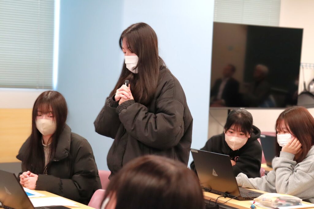 いつもの授業でもみんなの前で発表する話し方を学んでいる学生たちは、限られた時間の中でも分かりやすく発表していました!さすがです✨