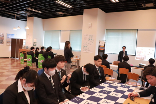 学生たちは興味のある企業を4回にわたりブースを移動し、さまざまな企業説明に参加することができます。