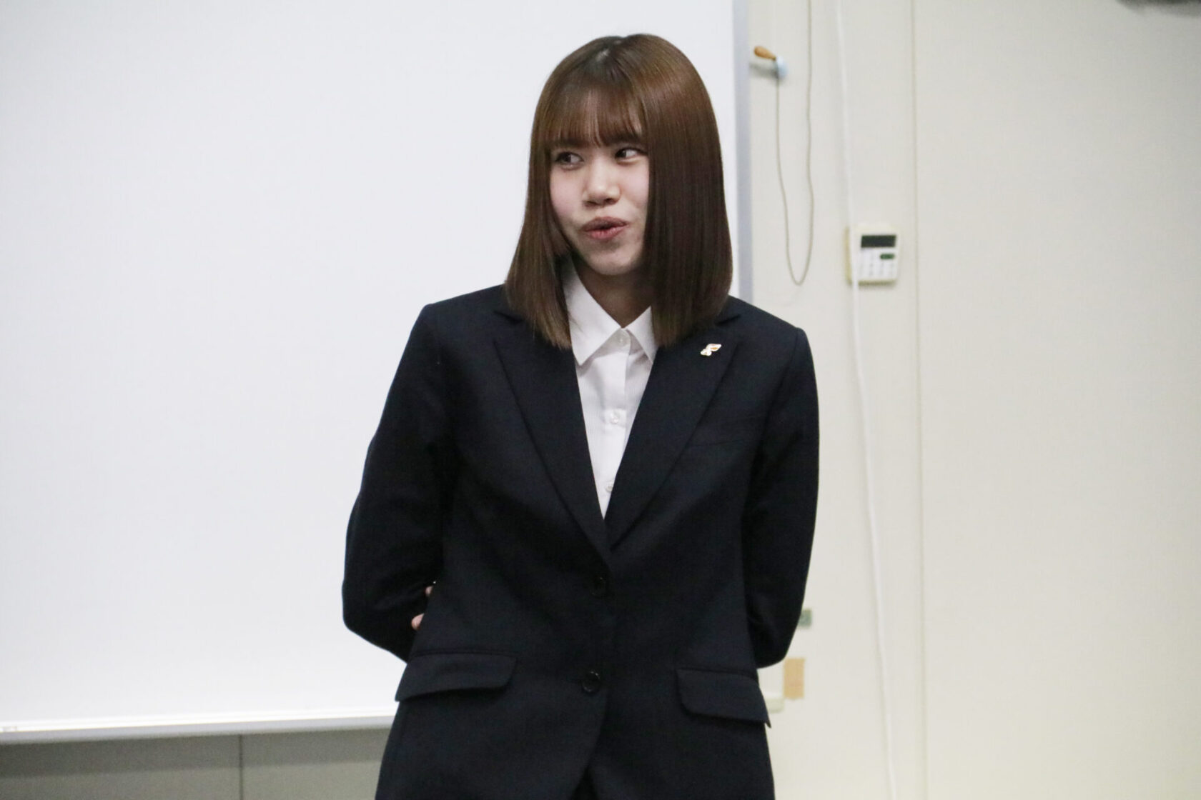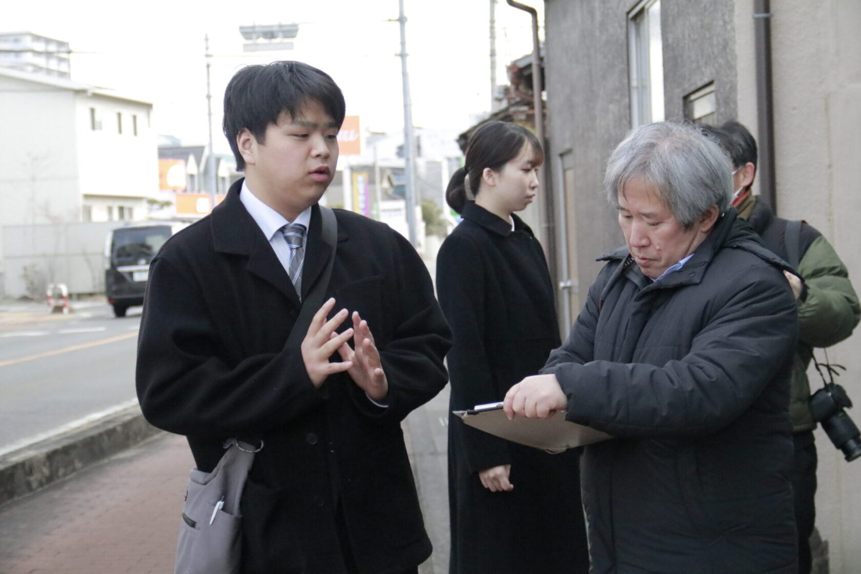 記者の方からの取材対応もバッチリ!さすが2年生!