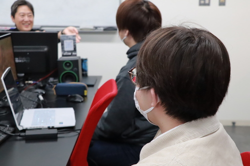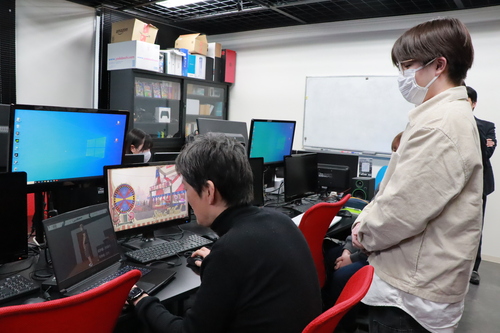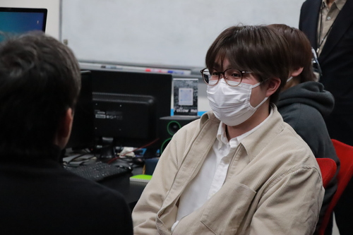 授業後には自作したゲームを実際に触ってもらい、アドバイスをいただく学生も。