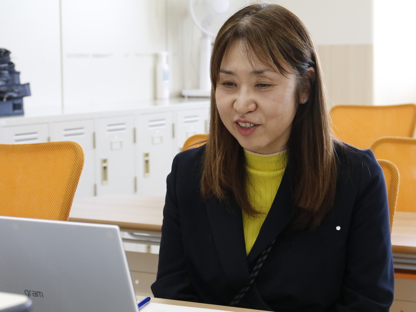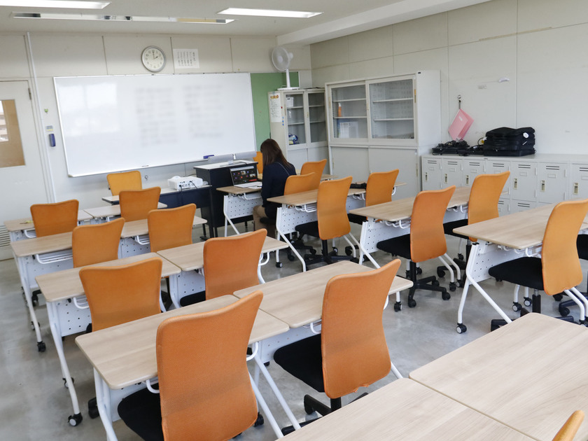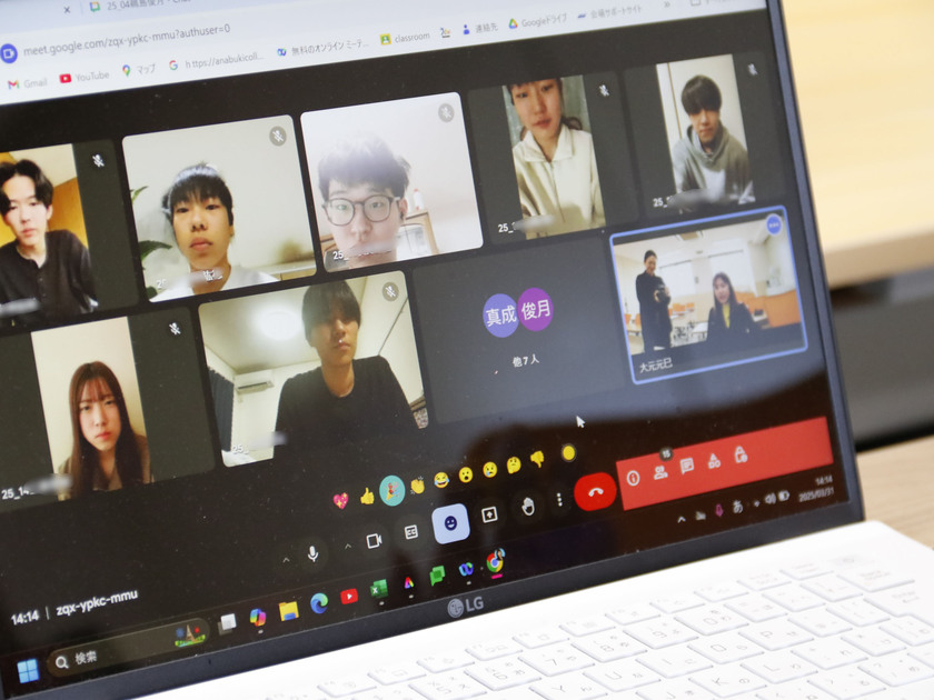 先生の前にあるノートパソコンの画面の向こうには、新入生たちの顔が並んでいます。