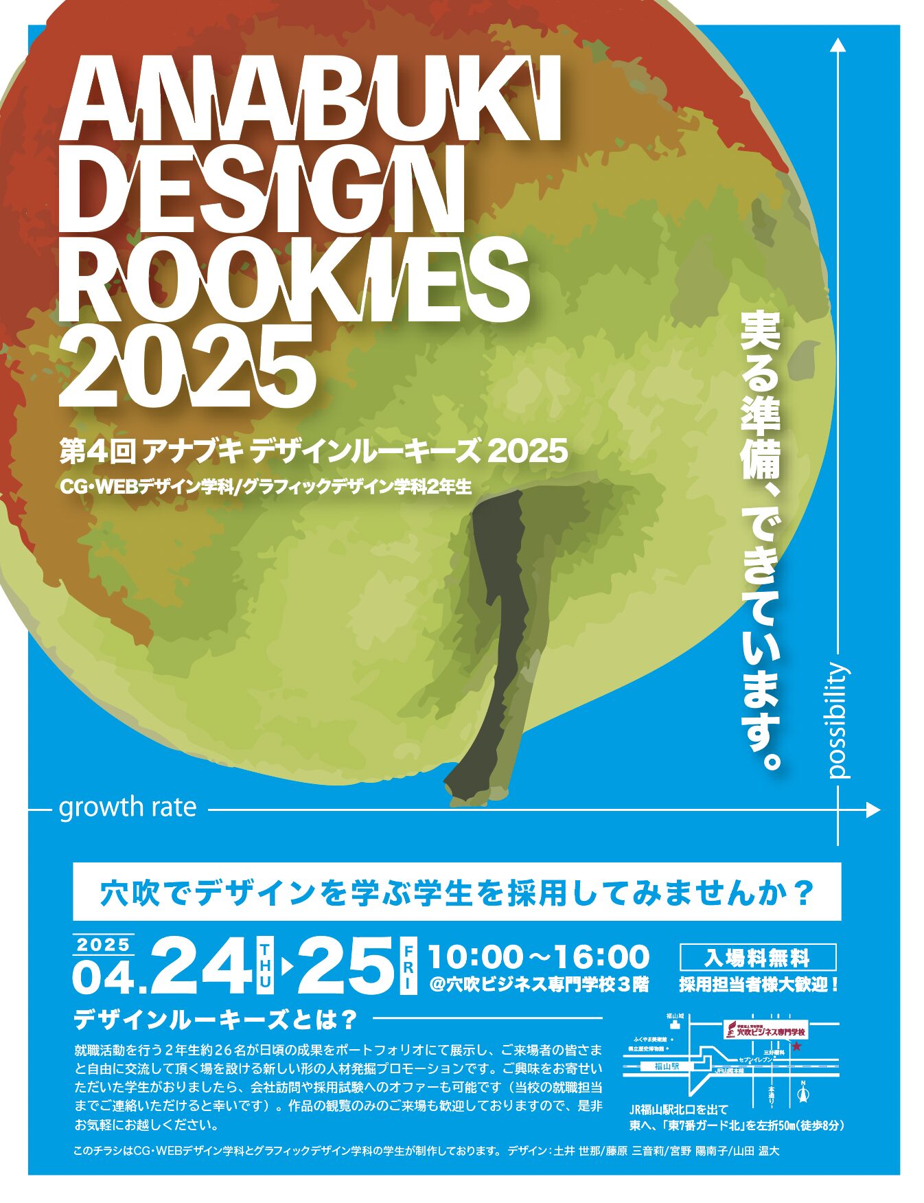 本校デザイン学科の学生と企業様をつなぐ、デザイン学科の就活イベント「穴吹デザインルーキーズ」。今年も4月24日・25日に開催いたします!現在、学生たちは企業様へのアピール作品やポートフォリオ(作品集)などを制作中!
