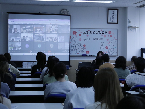 オンライン配信で、各教室に分かれて全体的な指導や手続きについて確認していきます。