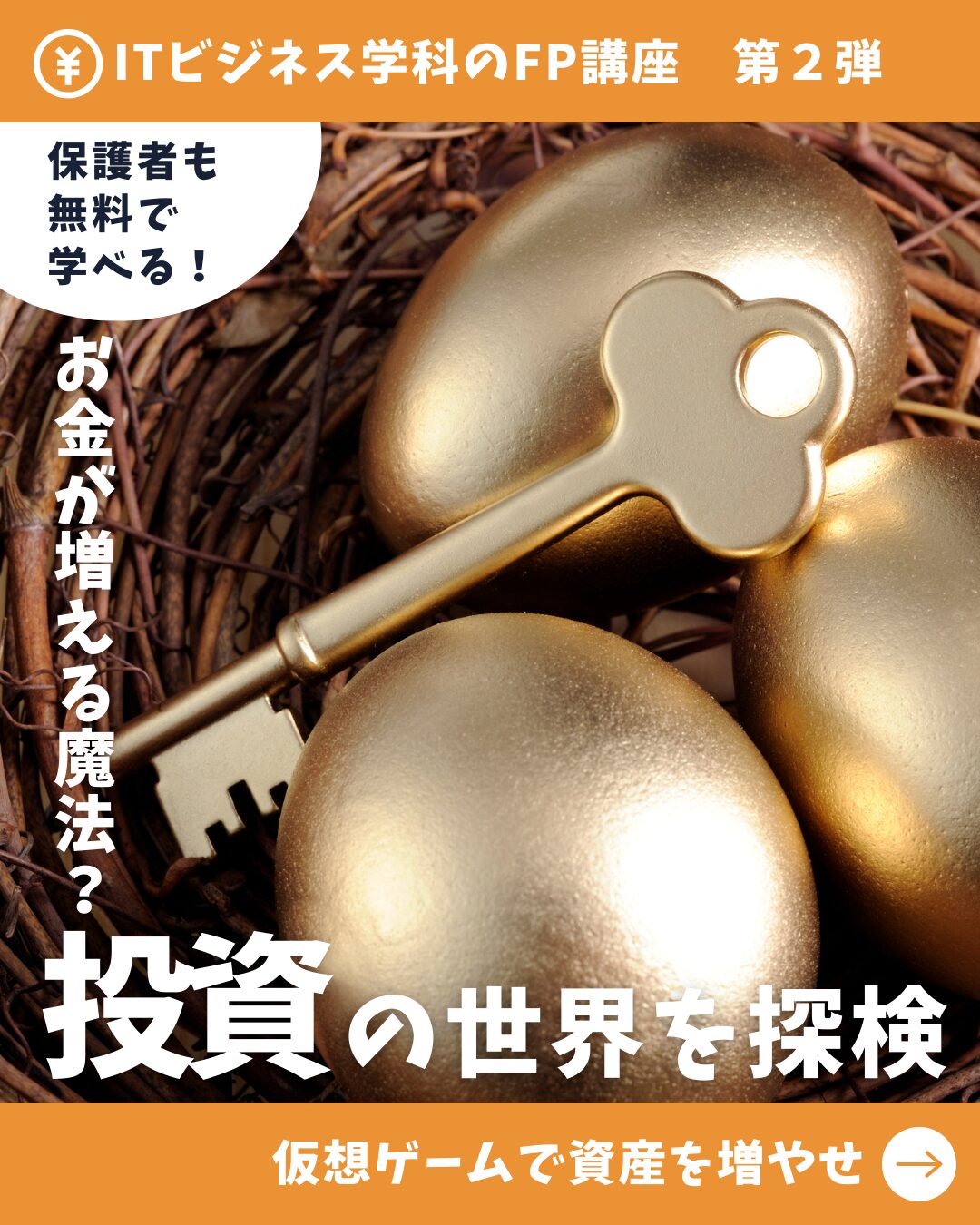 SNSやニュースでよく聞く「 投資」って一体何だろう?ちょっと難しそうな投資の世界を、仮想ゲームで楽しく体験!リスクとリターンの関係を理解して、かしこくお金を増やす第一歩を踏み出そう。保護者の方も、最新の金融知識をアップデートできます。