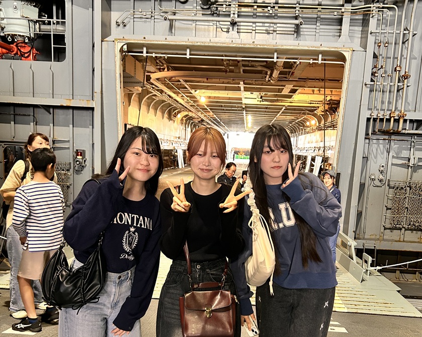 公務員系学科の学生たちが、11年ぶりに福山を訪れた海上自衛隊輸送艦「しもきた」の特別公開イベントに参加しました。