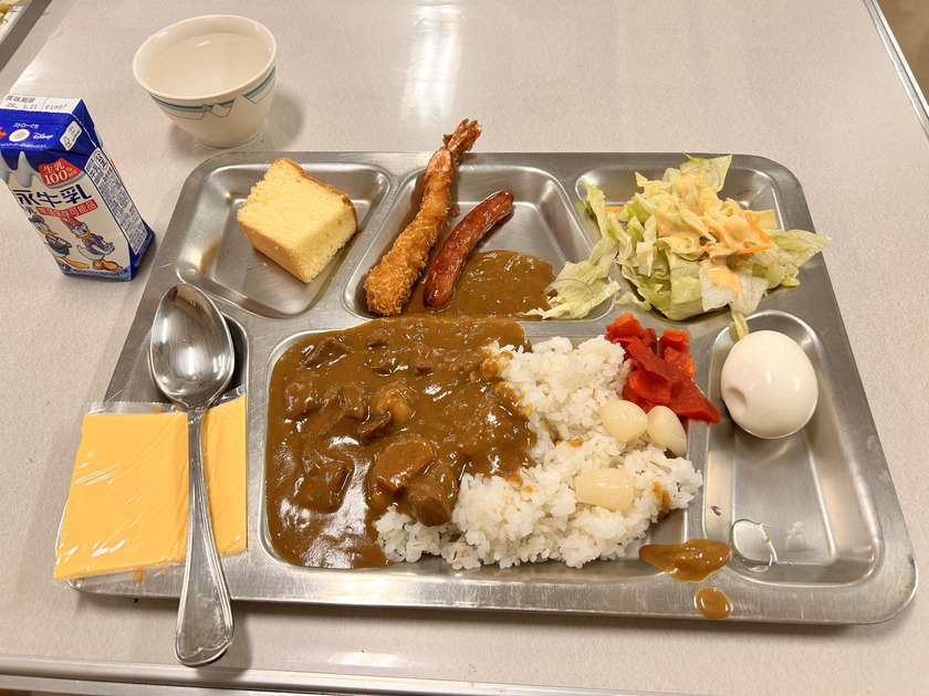 「カレーがとーってもおいしかった!!」「金曜日のカレーがむちゃくちゃおいしい」と、海上自衛隊名物のカレーは学生たちにも大好評。通常版と激辛版が用意され、学生たちも大満足でした。
