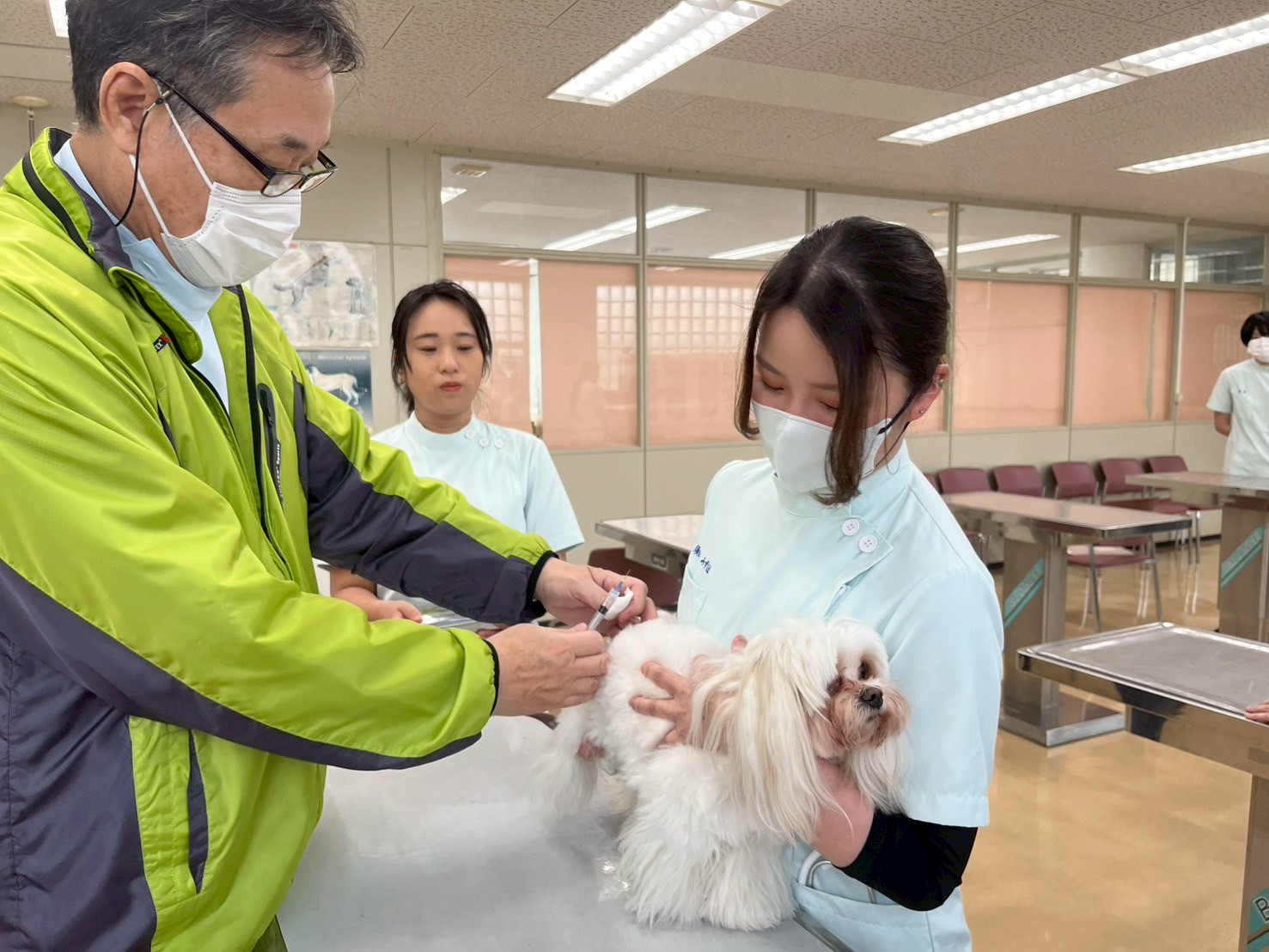 今日の実習では、狂犬病ワクチン接種を実施しました。