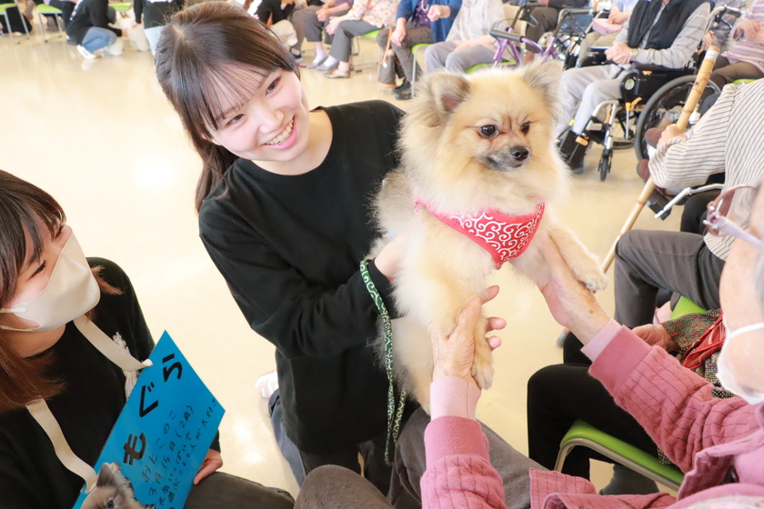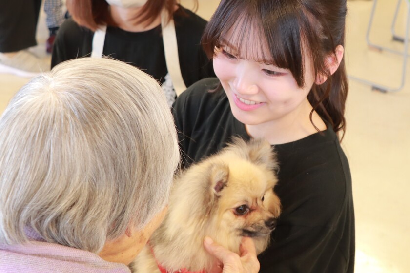 ふれあいを楽しんでくれる利用者様に学生たちも笑顔。
