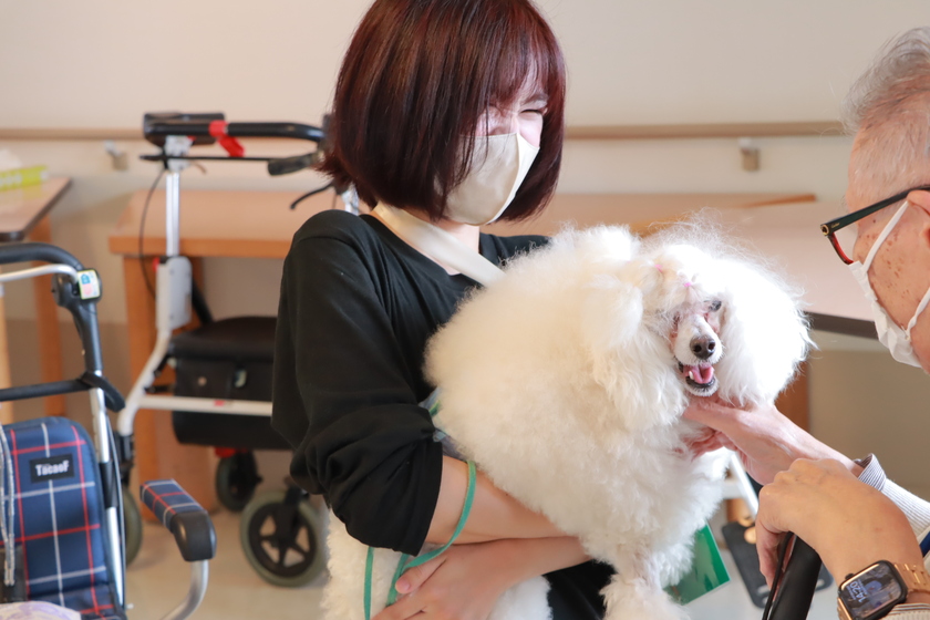 利用者さんが昔飼っていたペットの話をしてくれたり、愛犬の写真を見せてくれたり。動物を通じて、自然と会話が弾んでいきます。