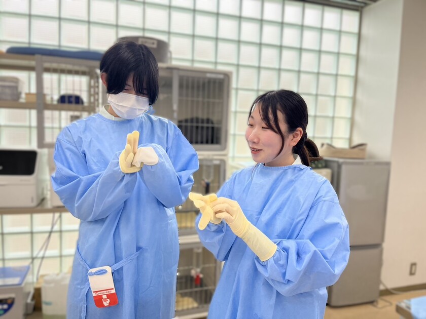 「動物外科看護学実習」では、将来動物看護師として欠かせない外科看護の基礎を実践的に学んでいます。