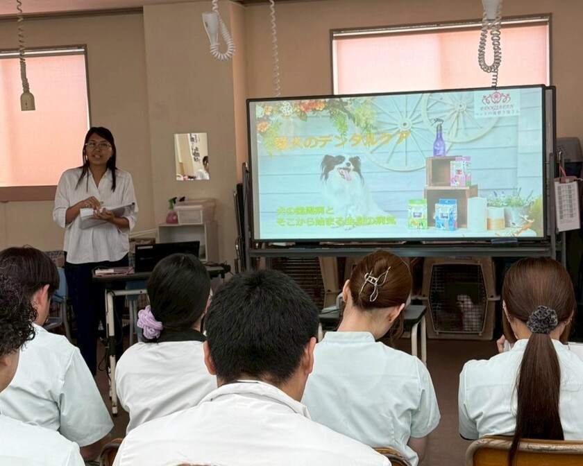 実際の症例写真を見ながら、デンタルケア不足が引き起こす様々な病気について理解を深めることができました。ペットを飼っている学生たちは「うちの子は大丈夫かな?」と真剣にメモを取る姿が印象的でした。