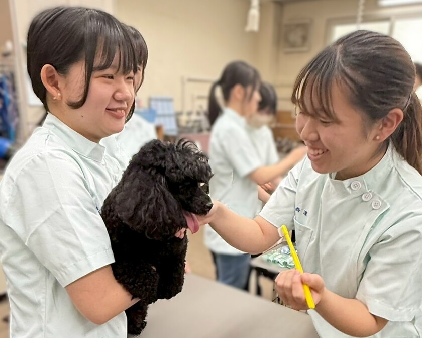 動物健康美容学科のトリマーコース1・2年生が、口腔ケア商品を扱うEDOG JAPAN様から直接指導を受ける特別講座を受講しました。