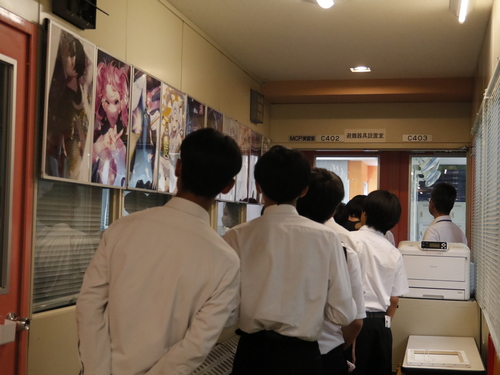 ゲーム実習室やネット動画の本格的な機材や、ブライダルのドレスなどが置かれた教室を回りました。