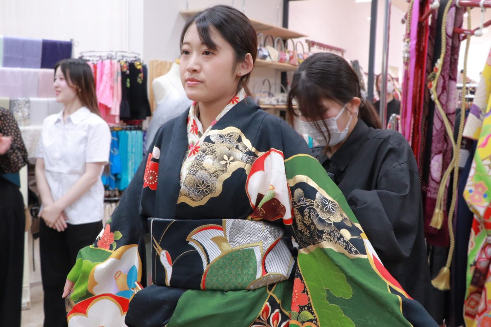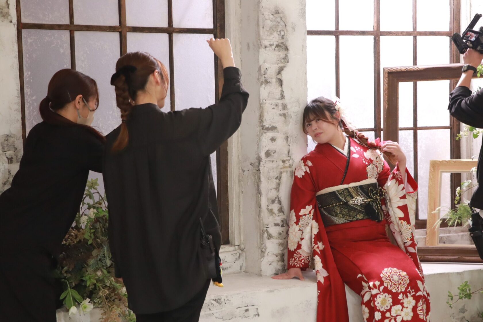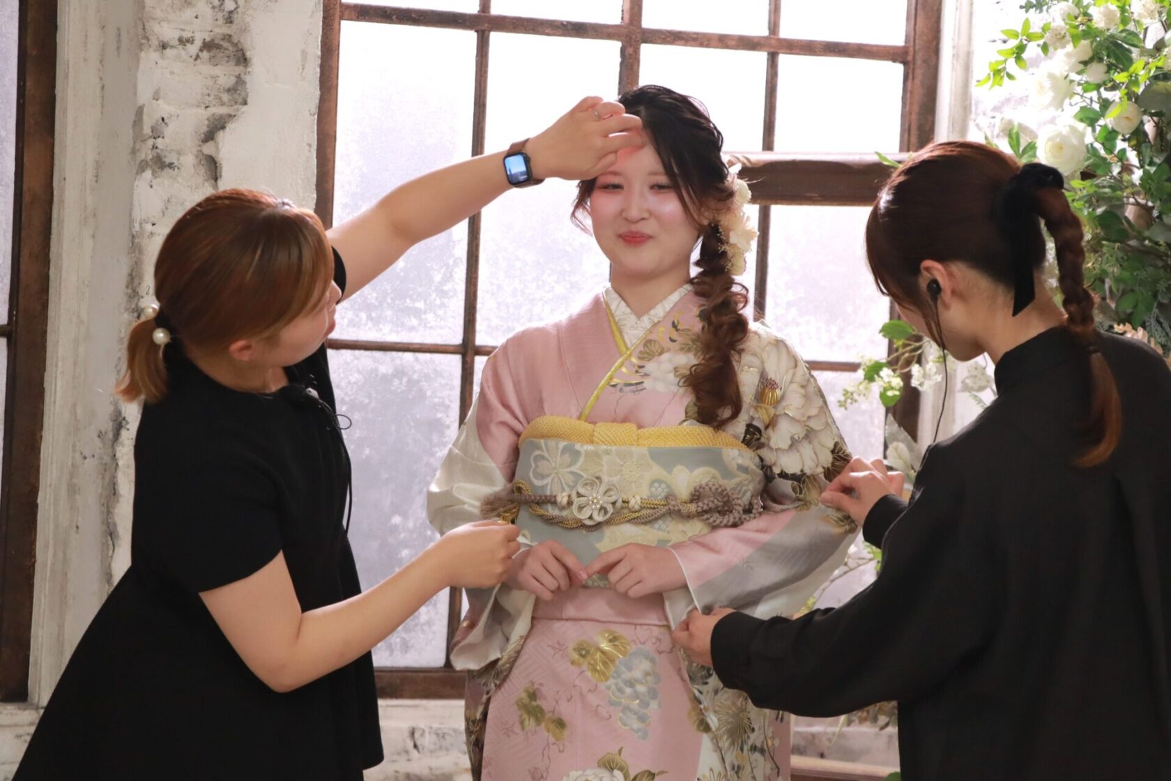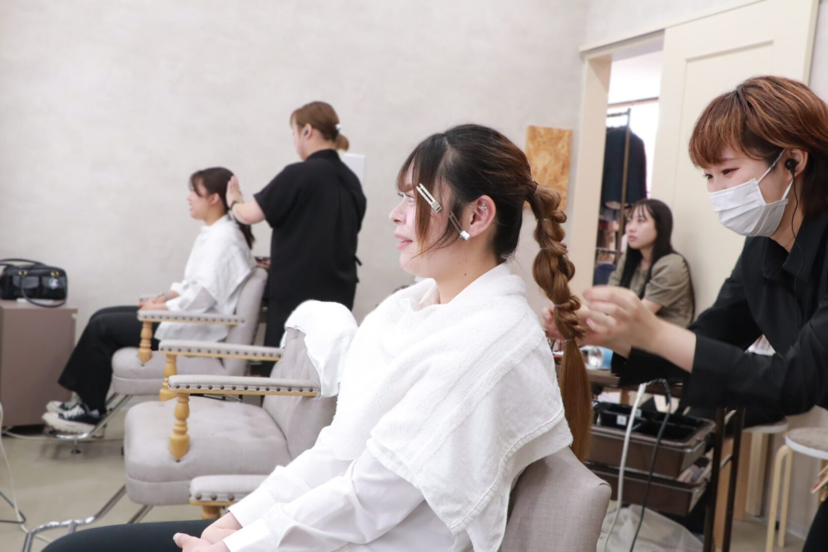 ヘアメイクや着付けなど、プロの技を間近で体験できる機会に真剣な表情も✨