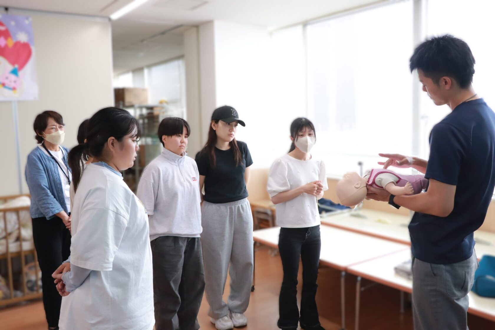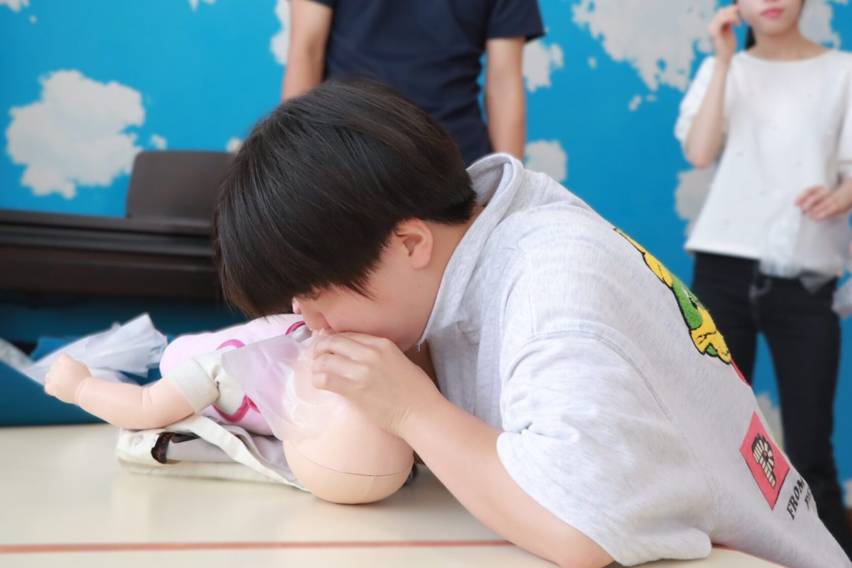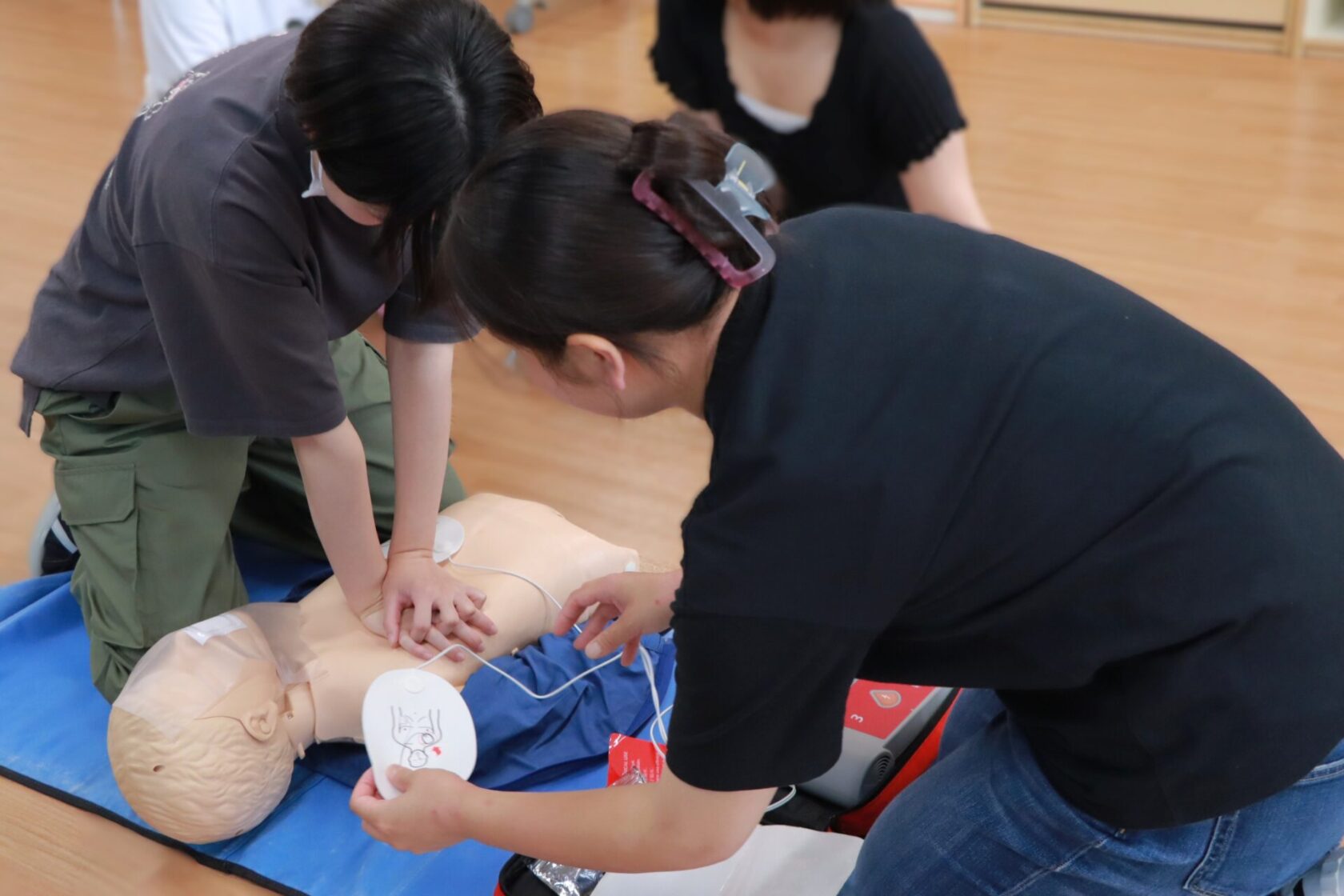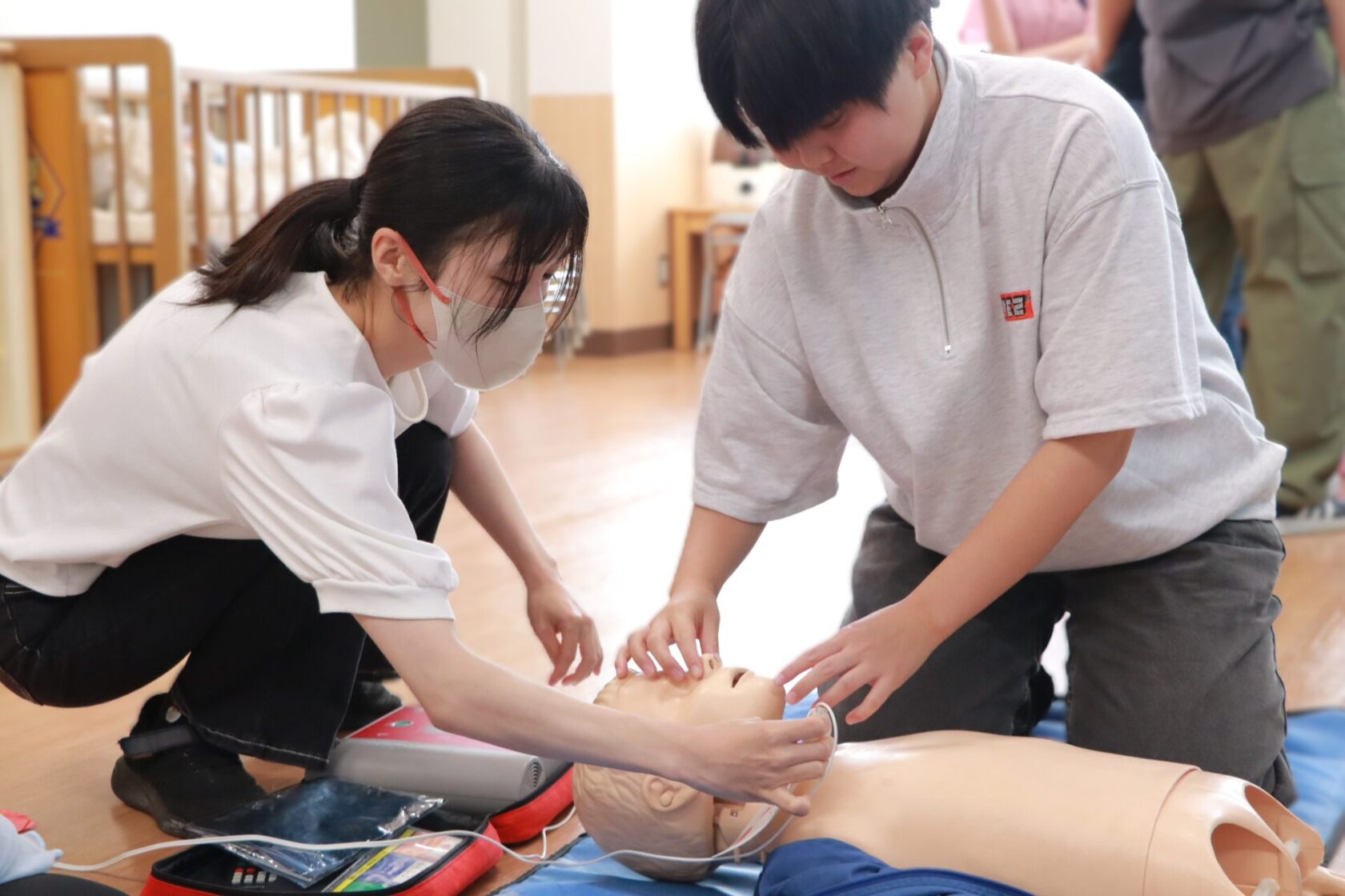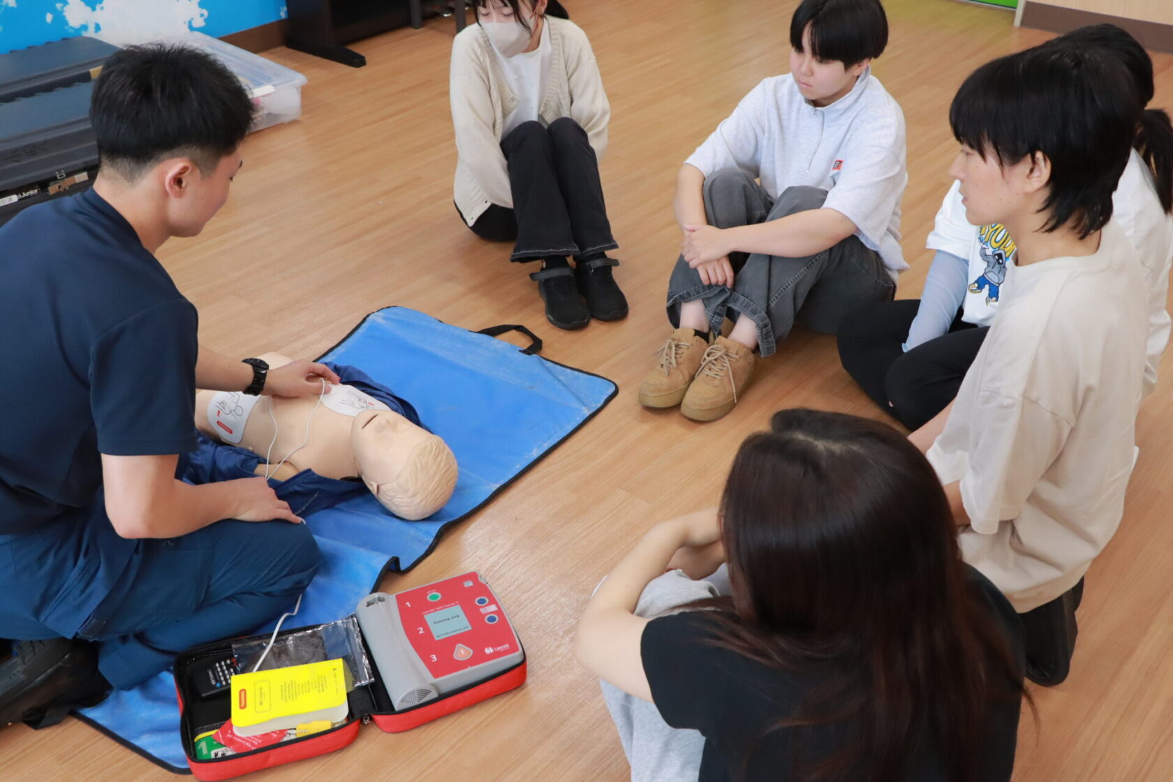 いざというときに対処ができるよう、心臓マッサージや人工呼吸などの方法を学ぶ講習です。