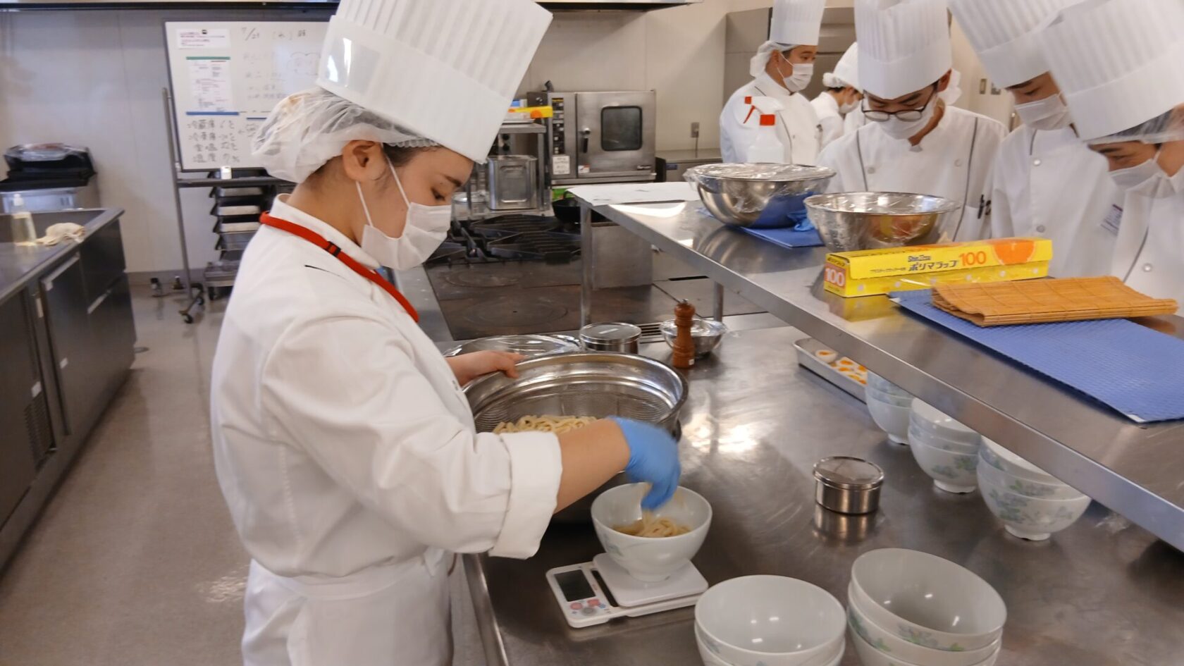 高度調理学科2年生が、最後の総合調理実習へ行いました。というのも後期は総合調理実習の授業はなく、本日が本当に最後の実習なのです。