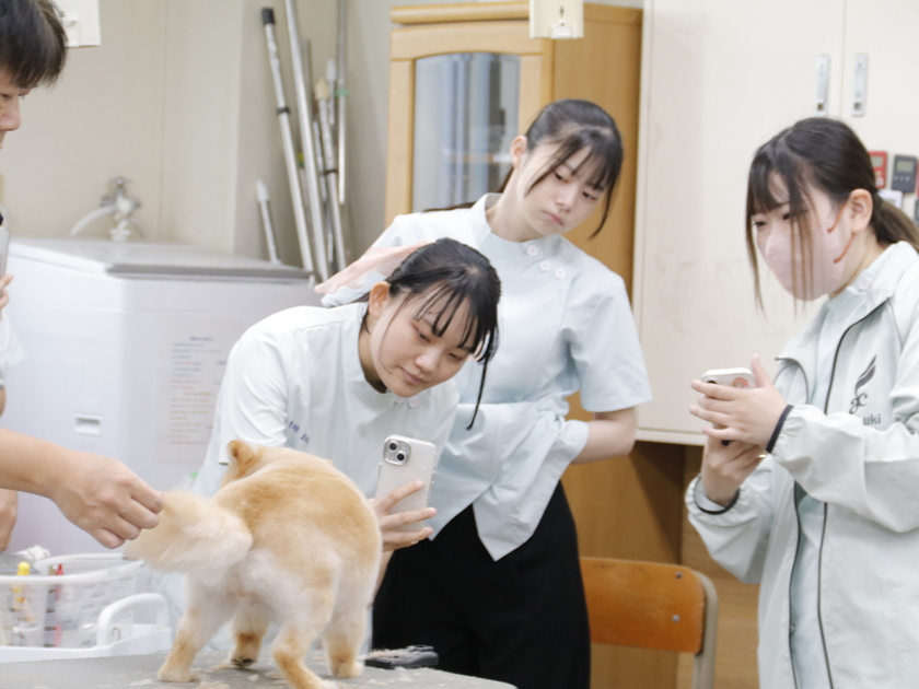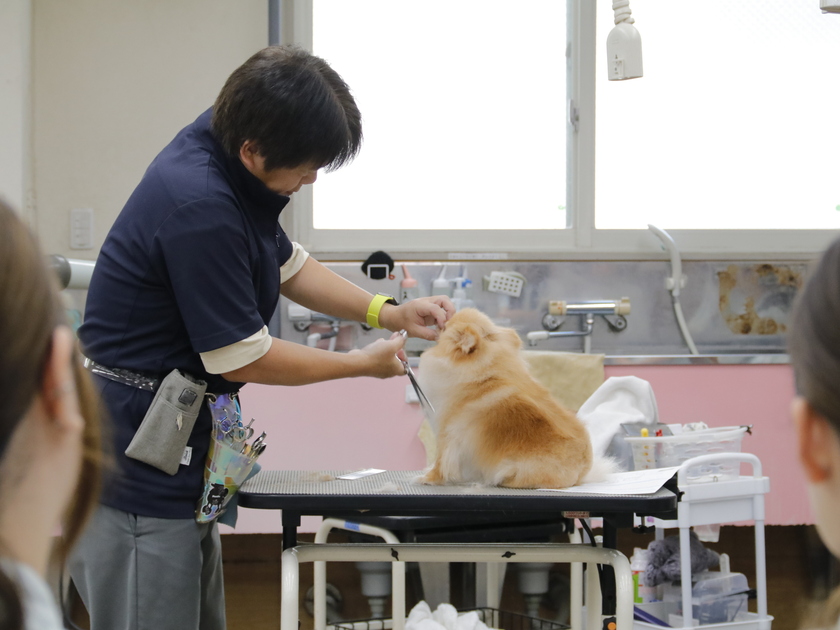 トリマーコースでは、犬種学などで理論をしっかりと学んだ上で、実習を通じて技術に落とし込めるようカリキュラムを組んでいます。