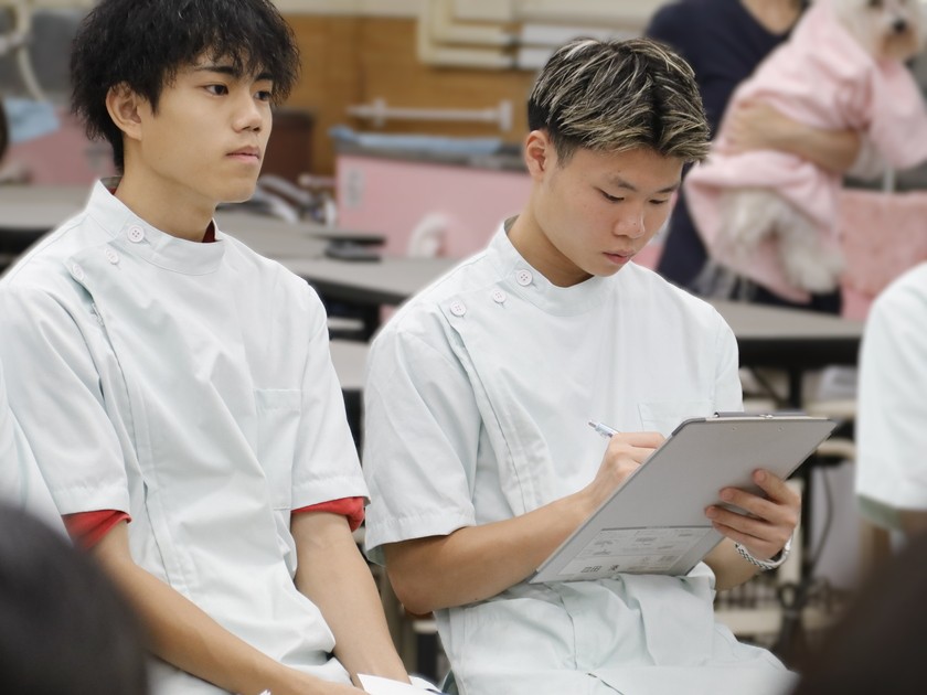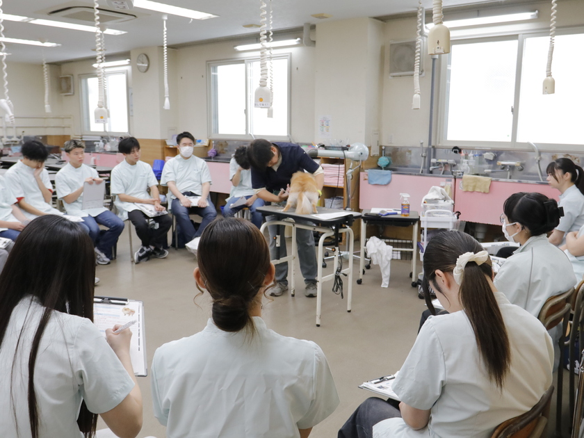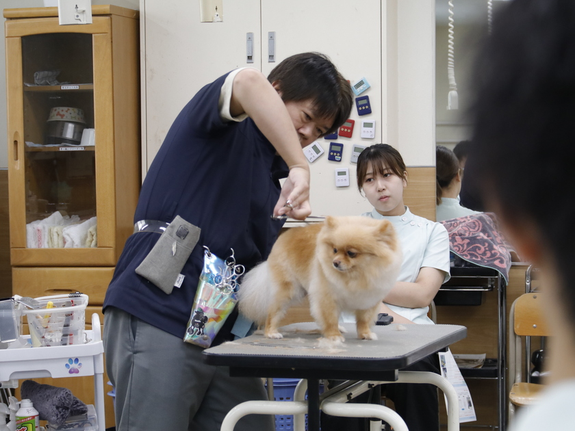 動物健康美容学科2年生のトリミング実習室に、いつもとは違う緊張感が漂っています。