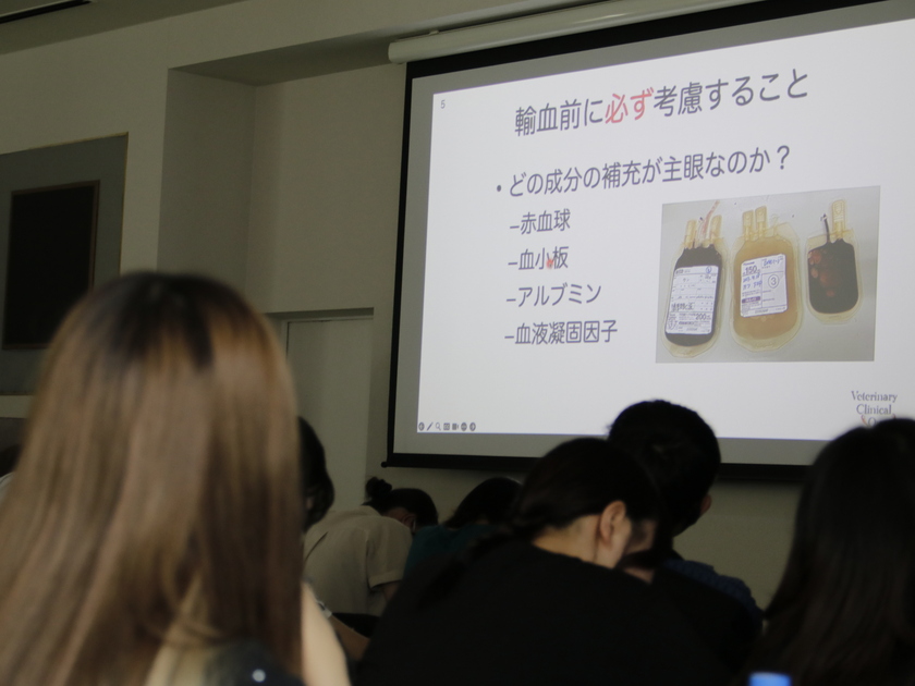 「犬はDEA1(-)、猫はAB型に注意が必要で、特に猫のB型にA型を輸血してしまうと、死に至る危険性があることを学びました」と学生も驚いていました。