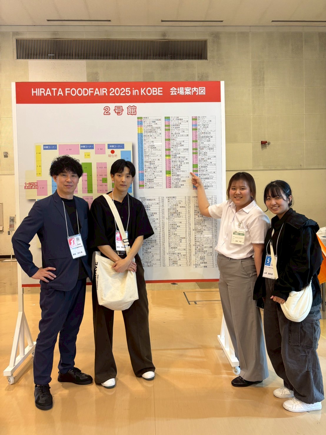2日目は、食の総合展示会「ヒラタフードフェア」に参加しました。ヒラタフードフェアは、製菓・製パン材料から器具、包装資材、店舗設計に至るまで、食に関わるあらゆる製品・サービスが一堂に会する西日本最大級の業務用食品総合展示会です。