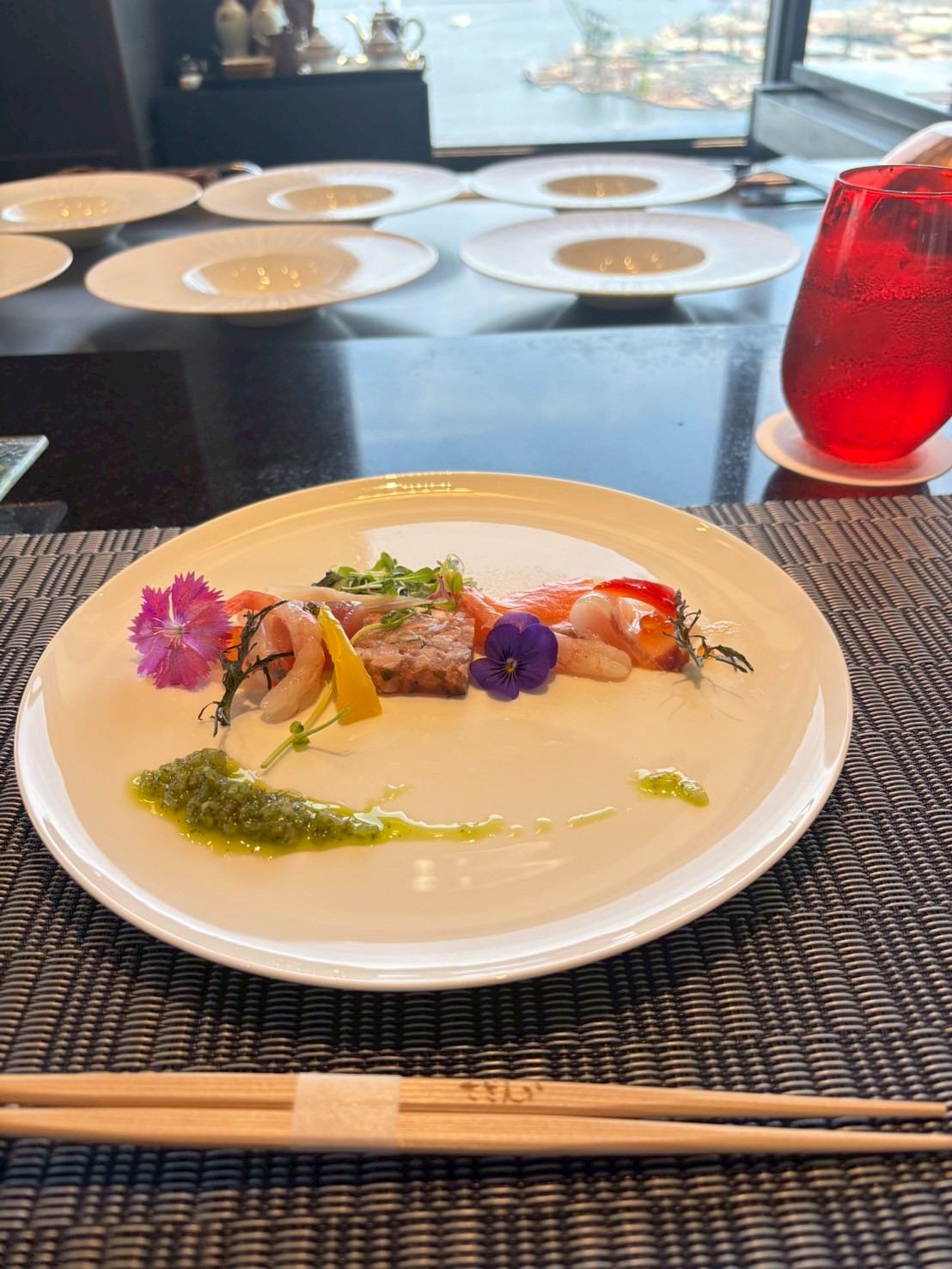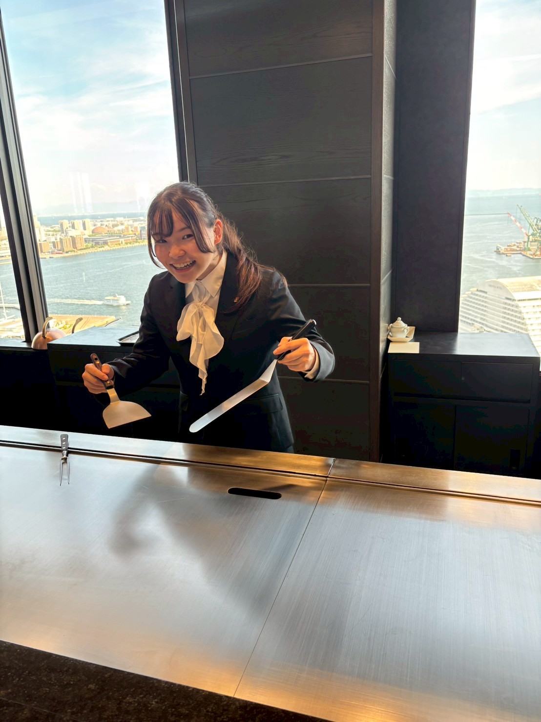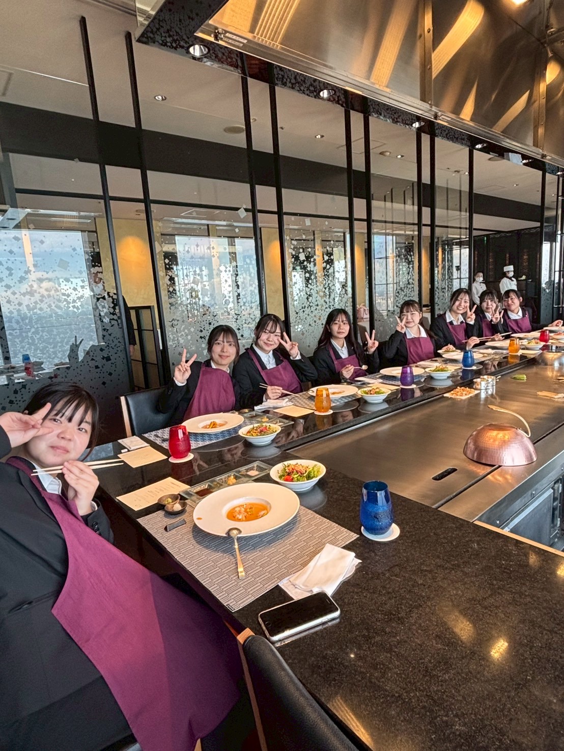 洗練された空間で提供される鉄板コース料理とデザートを堪能し、学生たちはその味覚だけでなく、盛り付けの美しさ、サービスに至るまで、一流ホスピタリティに感動した様子です。
