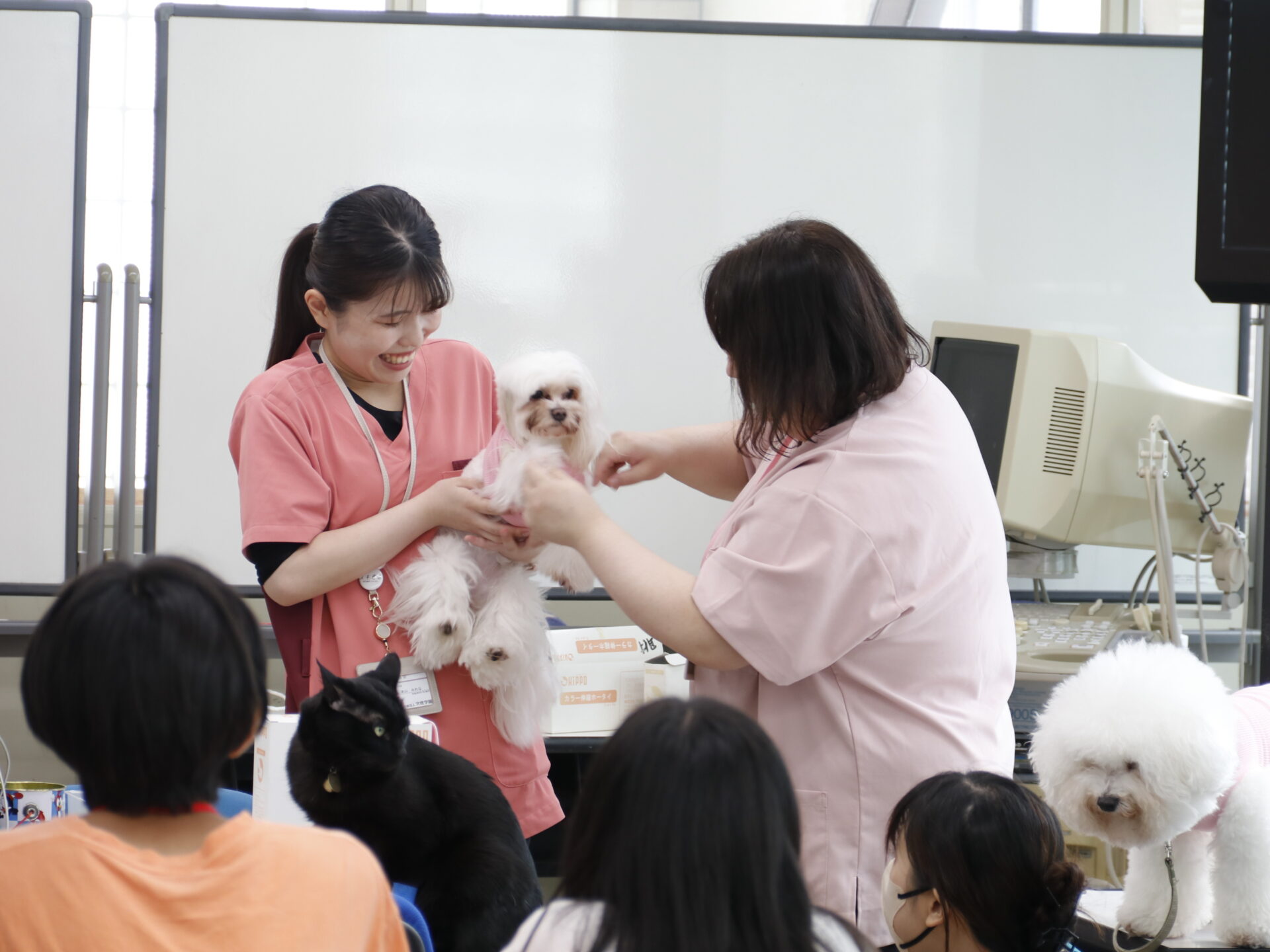 ■動物看護総合学科「動物看護師さんのお仕事体験!ワンちゃんネコちゃんに包帯を巻いてみよう!」