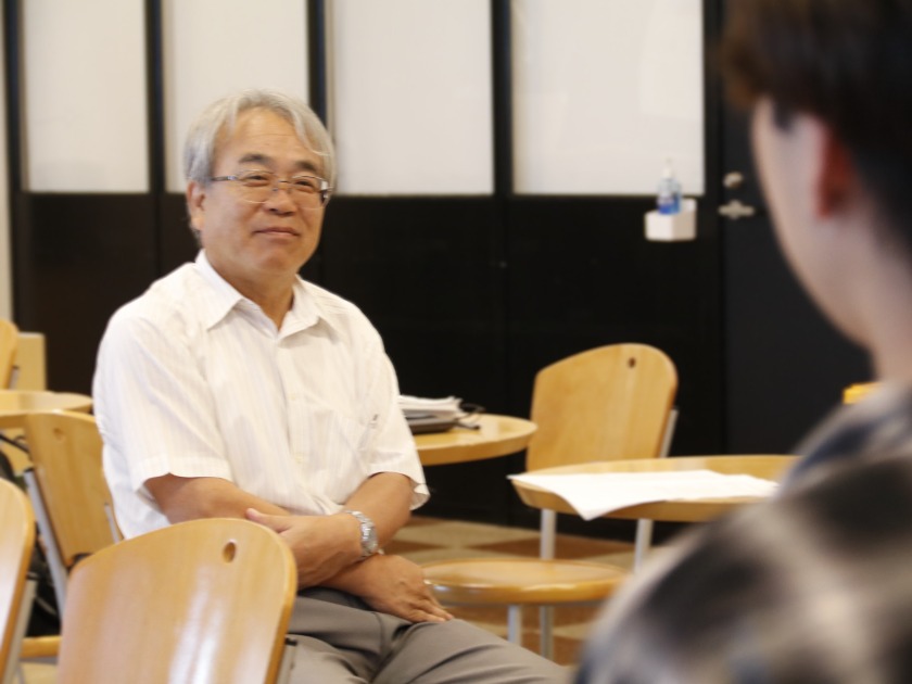 服装はラフな夏休みスタイルですが、学生たちの表情は真剣そのもの。 先生が演じる面接官からの鋭い質問に、必死に言葉を探します。