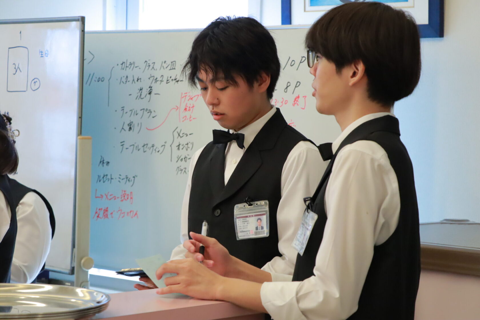 サービスの授業をきちんと受けているからこそ、お皿の持ち方や水の提供、料理のサービスまでがスムーズに!