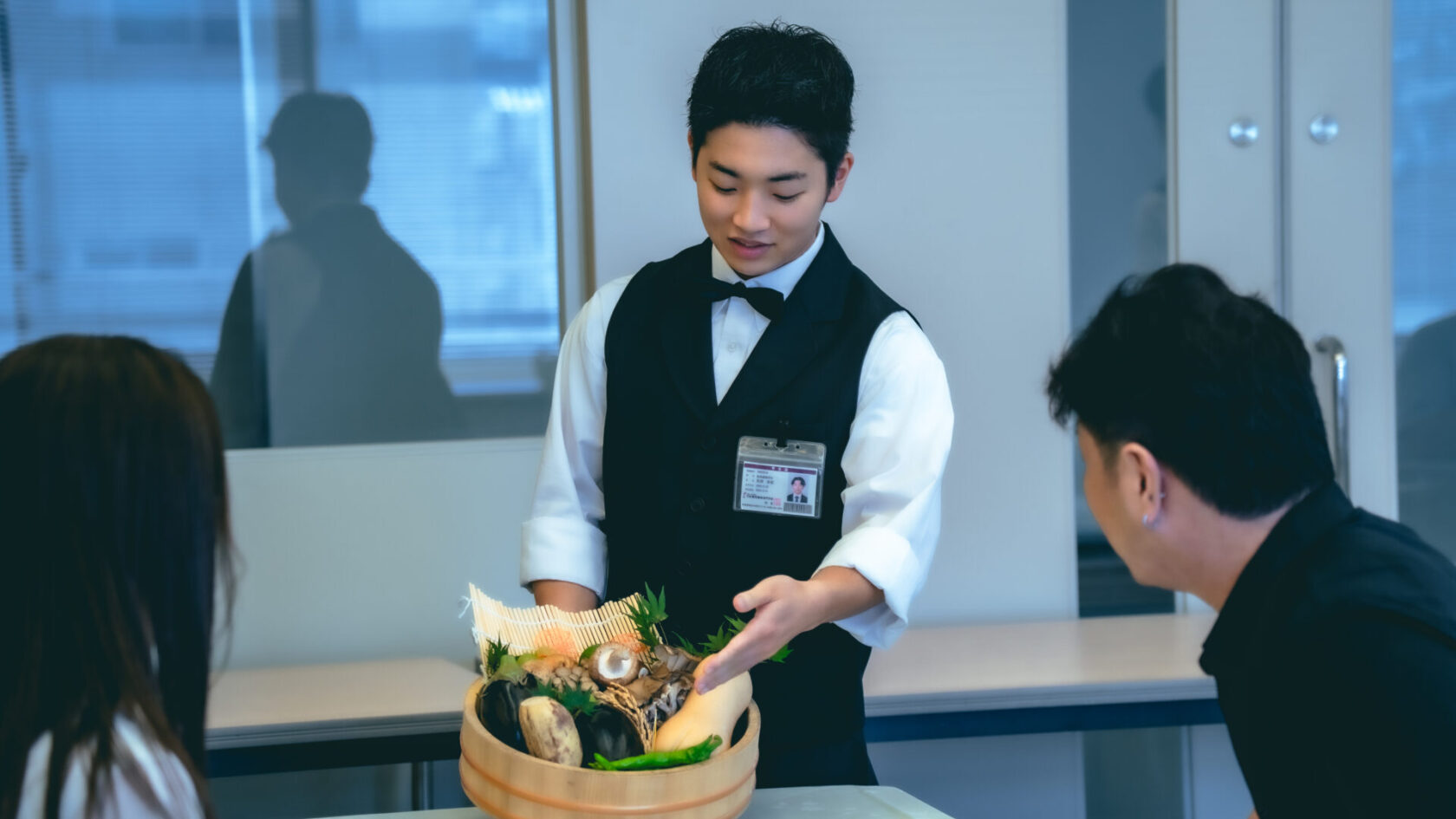 日本料理チームが腕を振るい、西洋料理チームが華麗にサービス