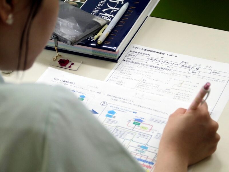 動物のプロをめざすなら、「スキ」をもっと深く、専門的に育てていくことが大切。犬の美しさと健康を守るトリマーをめざす動物健康美容学科の学生たちが、座学にも真剣に向き合う様子をご紹介します!