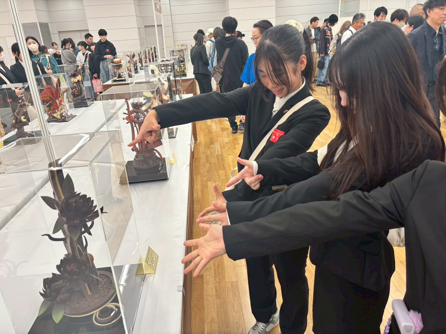 このショーには、日本全国のプロのパティシエたちが腕を競い合ったマジパン細工やチョコレート工芸、華やかなデコレーションケーキなどの「芸術品」が一堂に会します。学生たちは、その繊細な技術と創造性あふれる作品一つひとつを間近で見て、「これがプロの到達点なんだ!」と驚きと感動を覚えました。