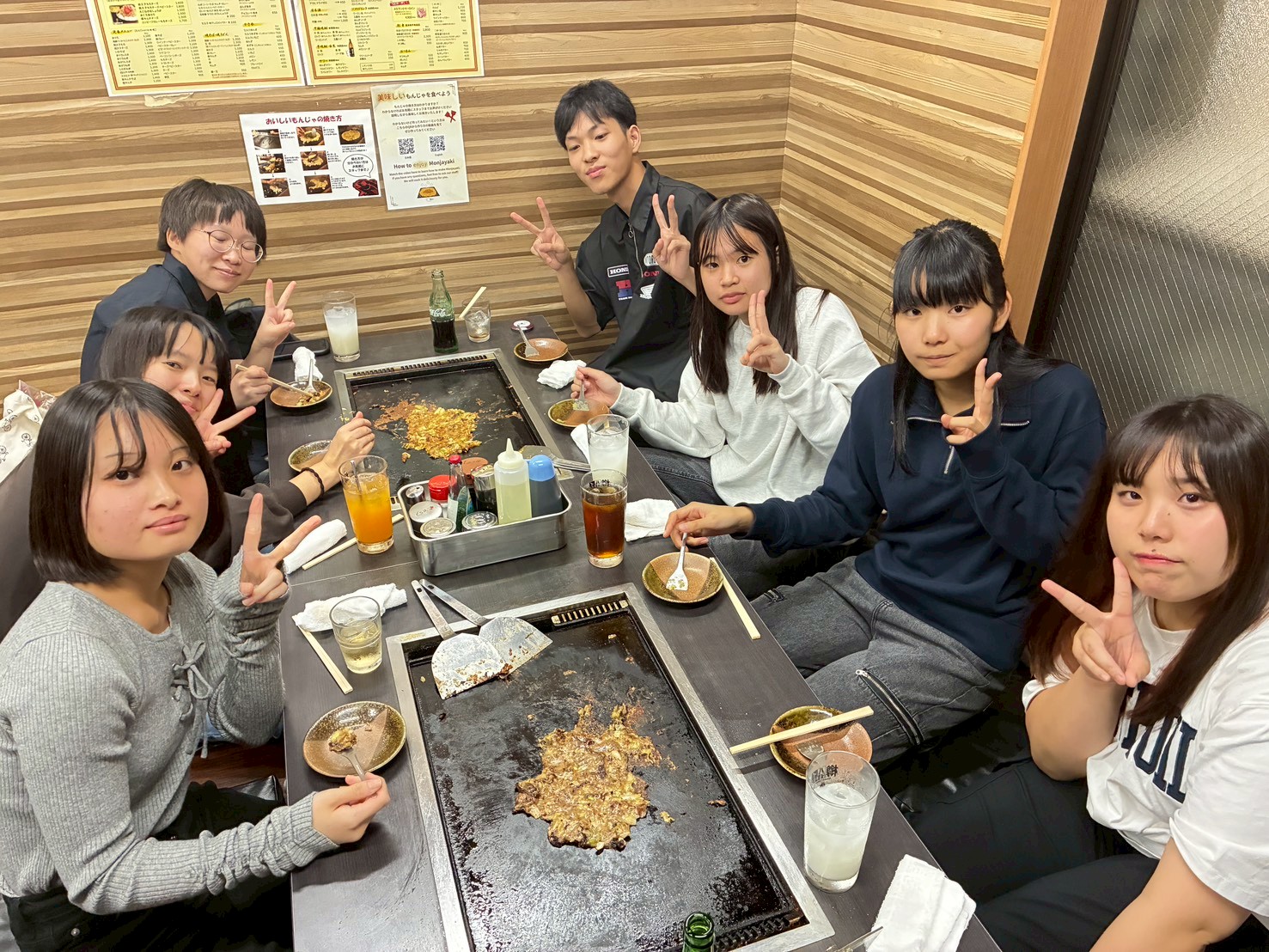 みんなでワイワイ言いながら作るお好み焼きやもんじゃ焼きは、学科の仲間との親睦を深める最高の機会となりました。日中は真剣にプロの技を学び、夜は仲間と楽しくリフレッシュ。このメリハリが、学生生活をより充実させています。
