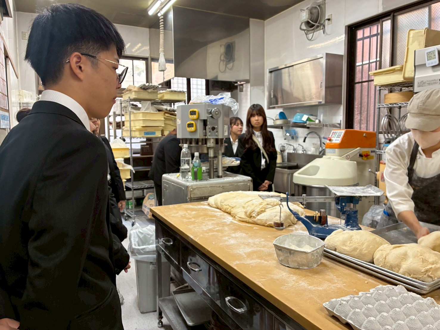 続いて訪問したのは、美味しいあんぱんを求めて行列ができるベーカリー「ナカヤパン」さん。こちらには、今年の卒業予定者がすでに内定をいただいています!内定先の訪問ということで、1年生たちは進路への意識がグッと高まりました。
