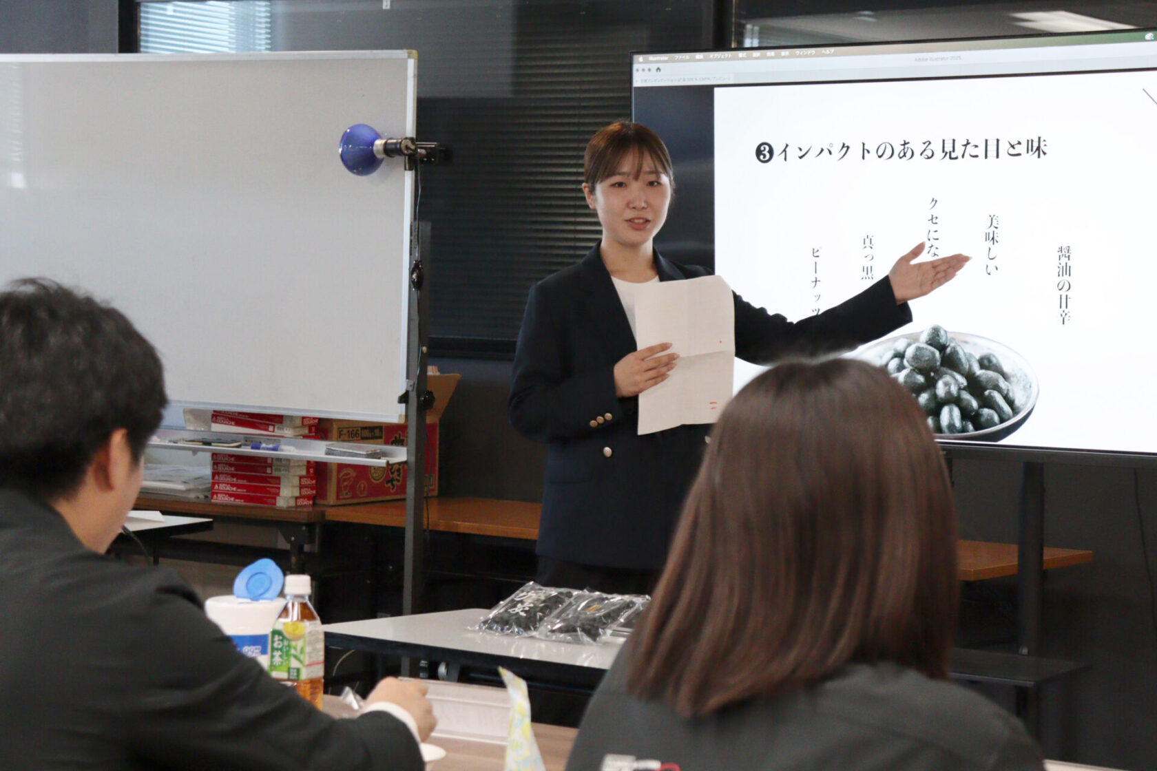 そして先日、TSDESIGN様にご来校いただき、最後の企画プレゼンを行いました!全チームの高いレベルのプレゼンにTSDESIGN様含め、教員もびっくり!企画の立ち上げ、社会人としての企業様とのやり取り、そしてデザイナーとしてのブランディング能力、どれをとっても1年生のレベルを超えていました。