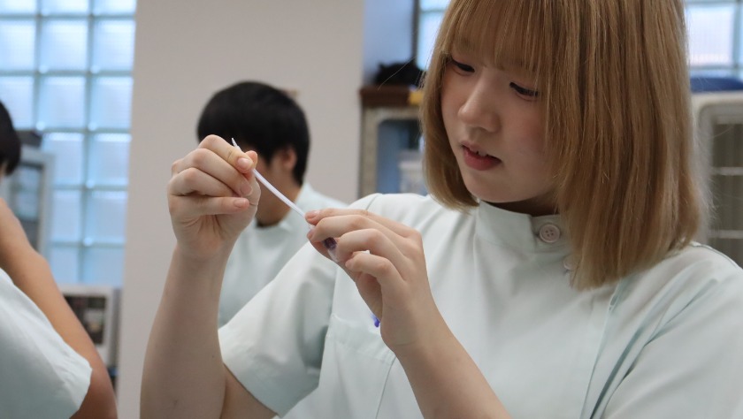 動物看護総合学科の2年生の「動物臨床検査学実習」