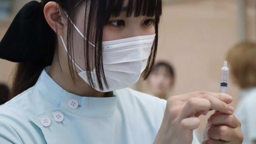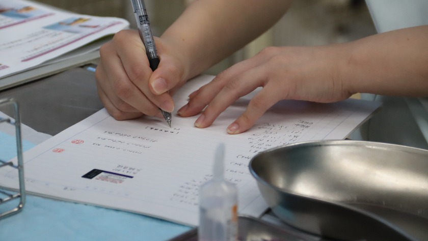 初めての血液検査を前に、学生たちの表情には緊張感が漂っていました。