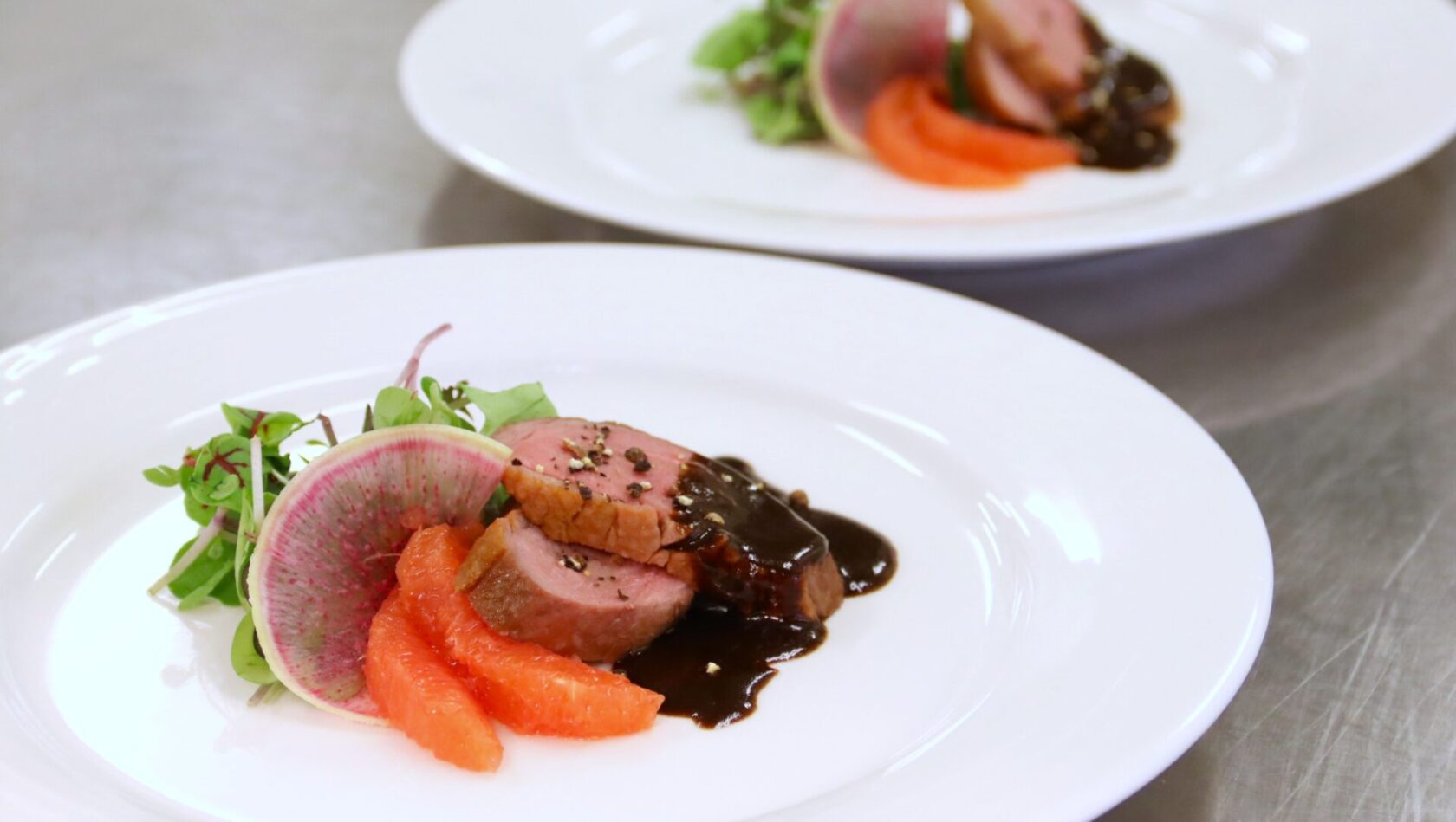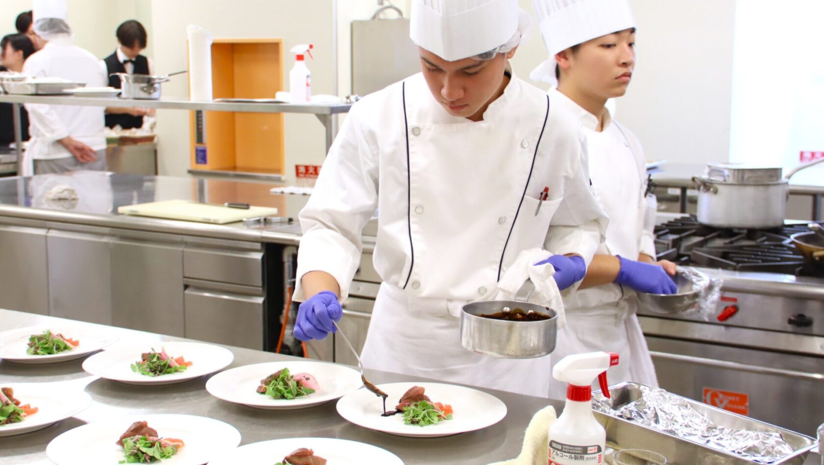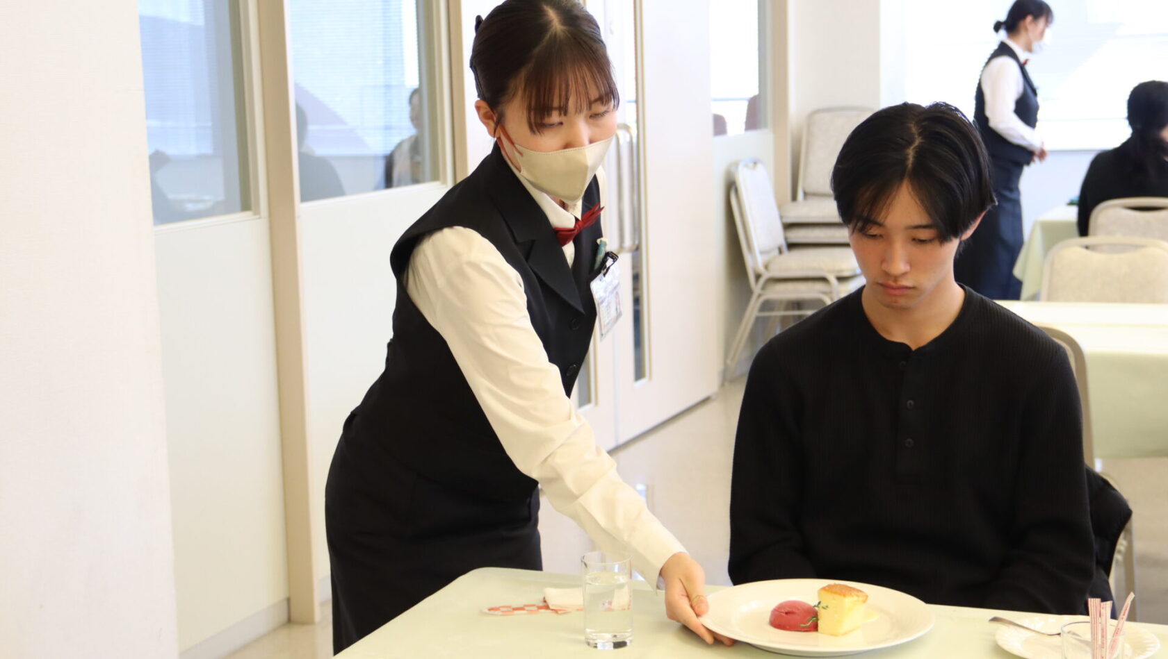 第5回目のメニューは! 料理がこちらです! 鴨のロースト、サラダ添え きのこと玉ねぎのスープ 真鯛のポワレ、ヴァンブランソース レモン風味のバターケーキとカシスのソルベ お客様(教職員と1年生)の来店時間が重なったため、大忙しでしたが、連携し合って対応できていました! 特にデシャップを担当したIさん!声を出して、キッチンとホールの連携をうまく調整できてました! サービス担当の先生もほめてくれていましたよ!! 回を追うごとに成長する学生が頼もしいです!