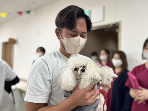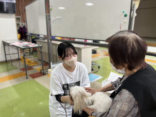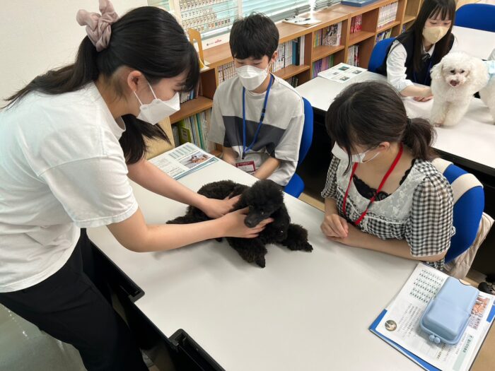 まずは、学生たちがわんちゃんとの正しいふれあい方を丁寧にレクチャーします。