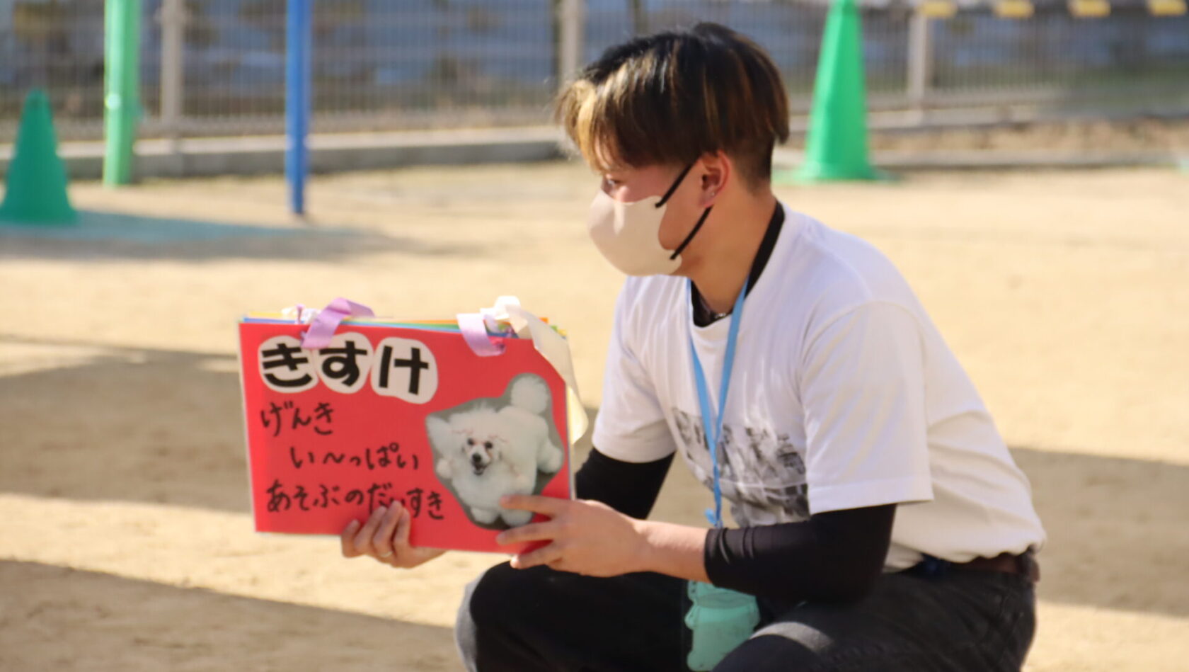 子どもたちは、わんちゃんたちが来るのをとっても楽しみにしてくれていたようです。学生たちが到着すると、まだ準備中なのに外に出てきてくれたり、窓から興味深そうに覗いていたりと、待ちきれない様子が伝わってきました。