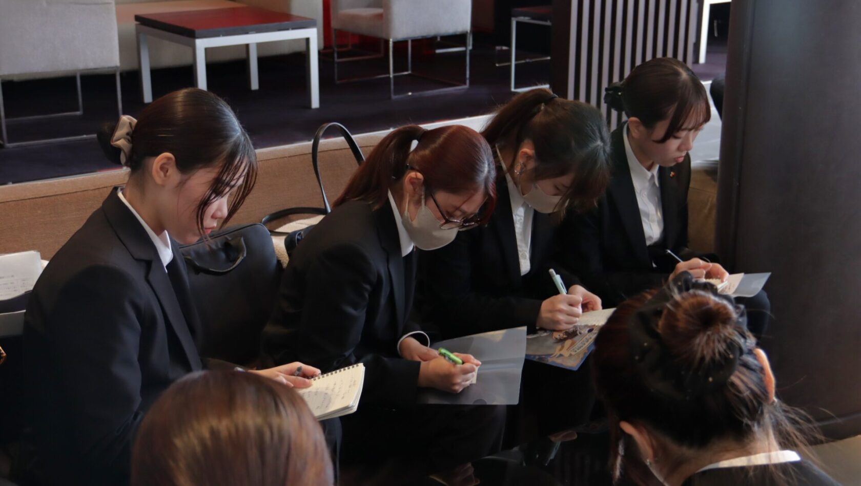 学生たちは、真剣な眼差しで新婦様と向き合い、情報を一つ一つ丁寧にメモしていました。