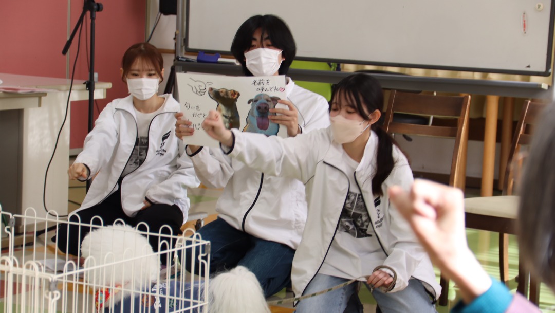 学生たちが企画したのは、スタッフ犬の名札を一緒に作る時間や、スタッフ犬にまつわるクイズ大会!
