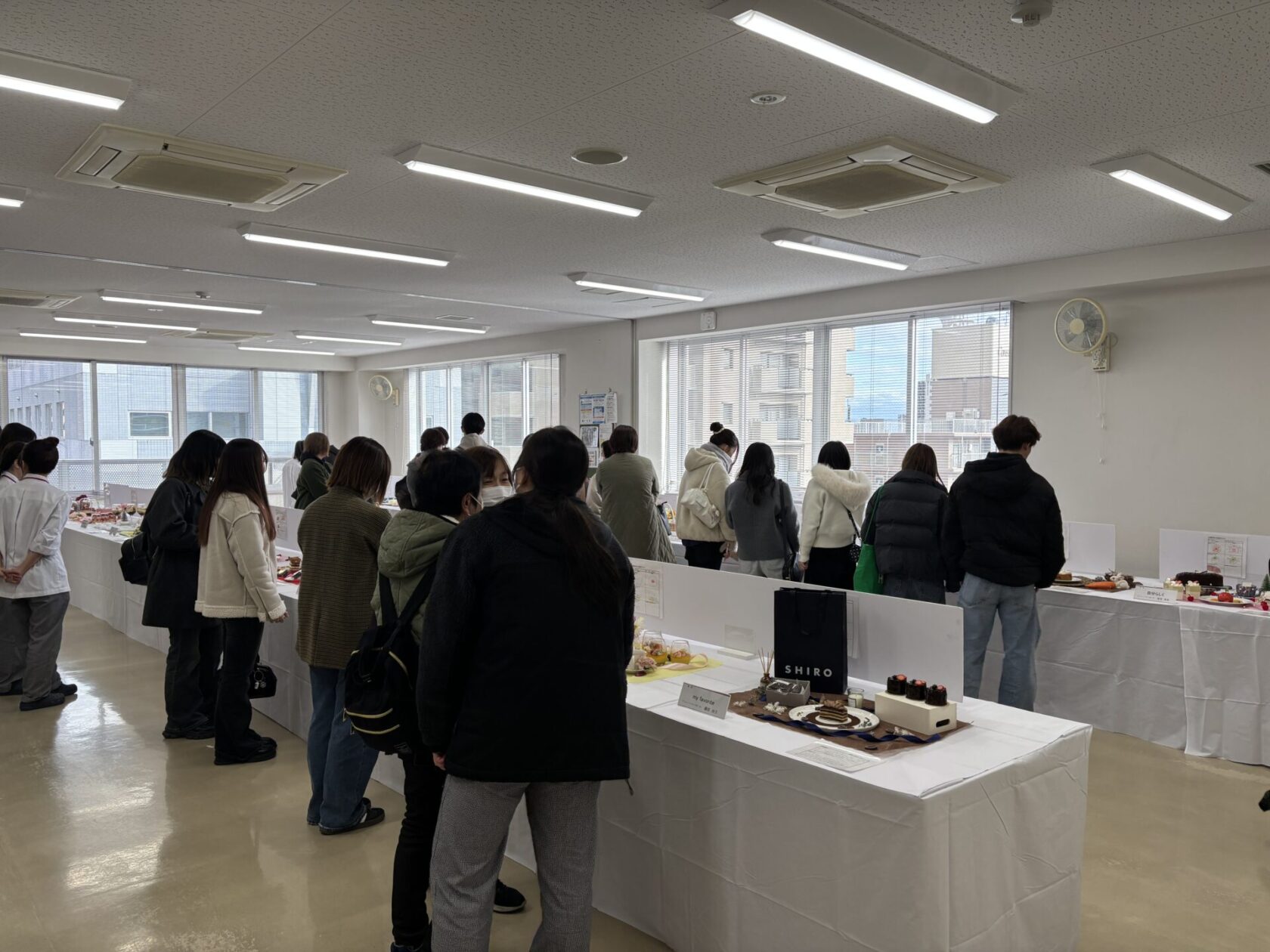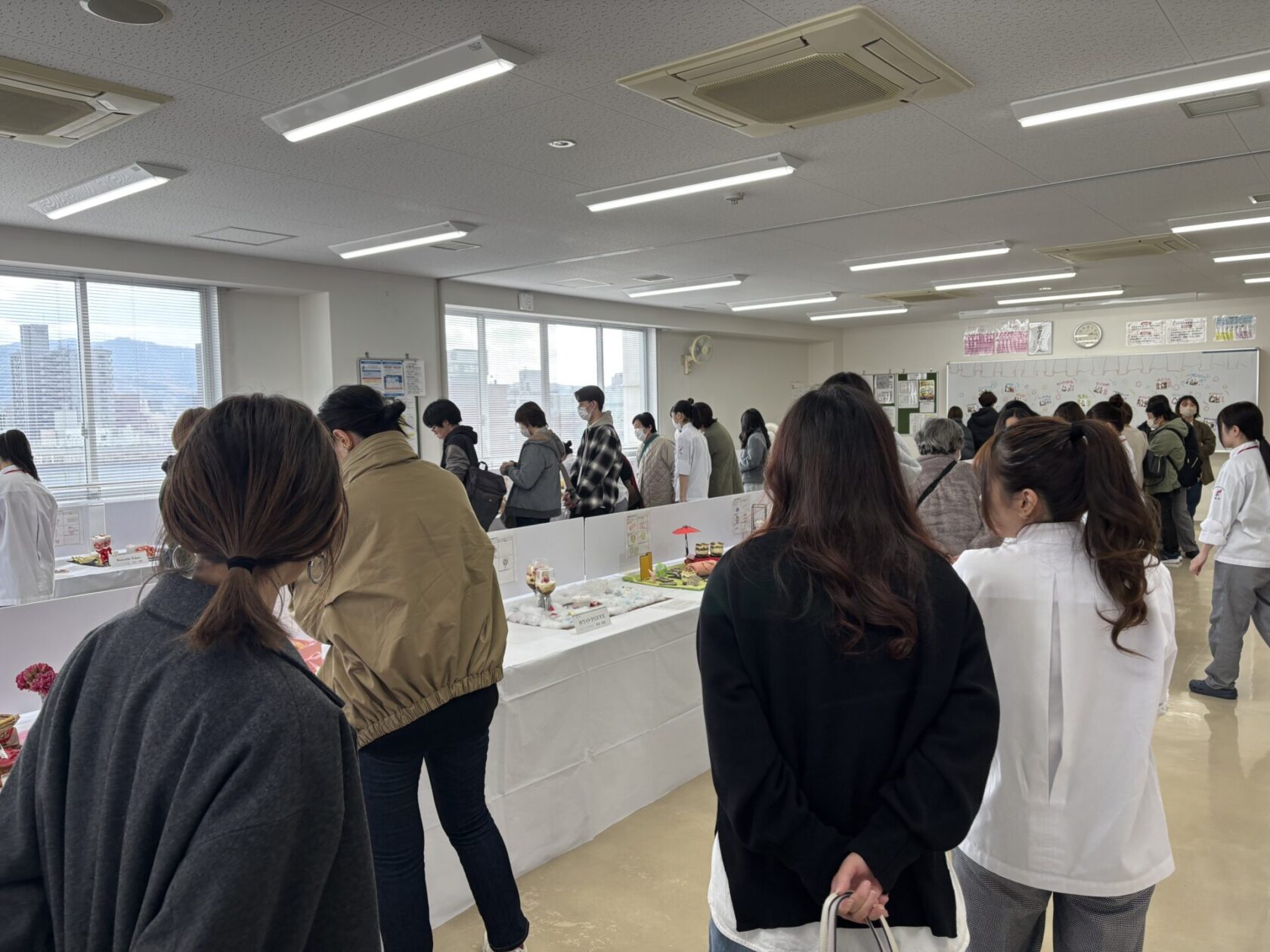 展示会当日、実習室では学生たちが朝から最終仕上げに集中している様子が見られました。