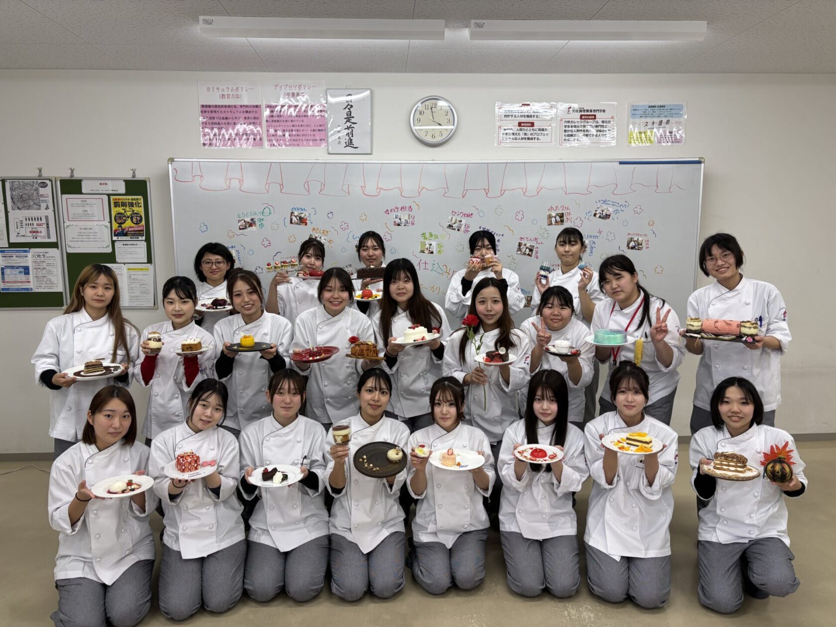 ご来場いただいた方は、学生たちの作品を見て、その美しさと完成度の高さに驚き、そして感動してくれていました。学生たちは、自分たちの作ったデザートを前に、来場された方が驚き・笑顔になる姿を直接目にします。この瞬間こそが、パティシエという仕事の最大の魅力です。