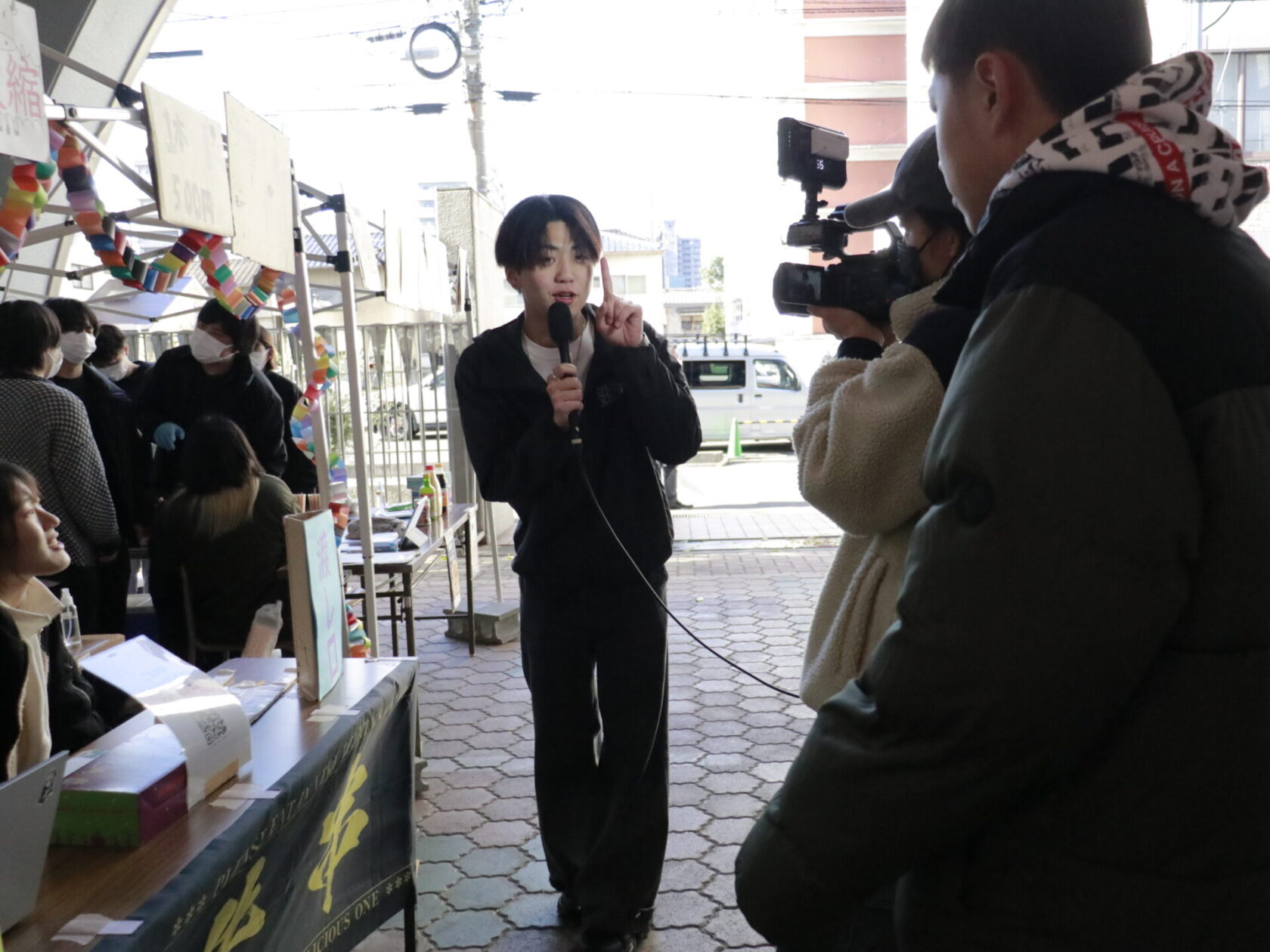 主にステージイベントを配信しましたが、今年は模擬店の突撃インタビューを学生広報スタッフ「スキキャス」のメンバーが担当!