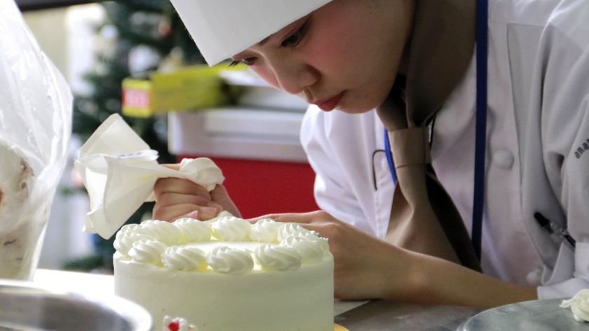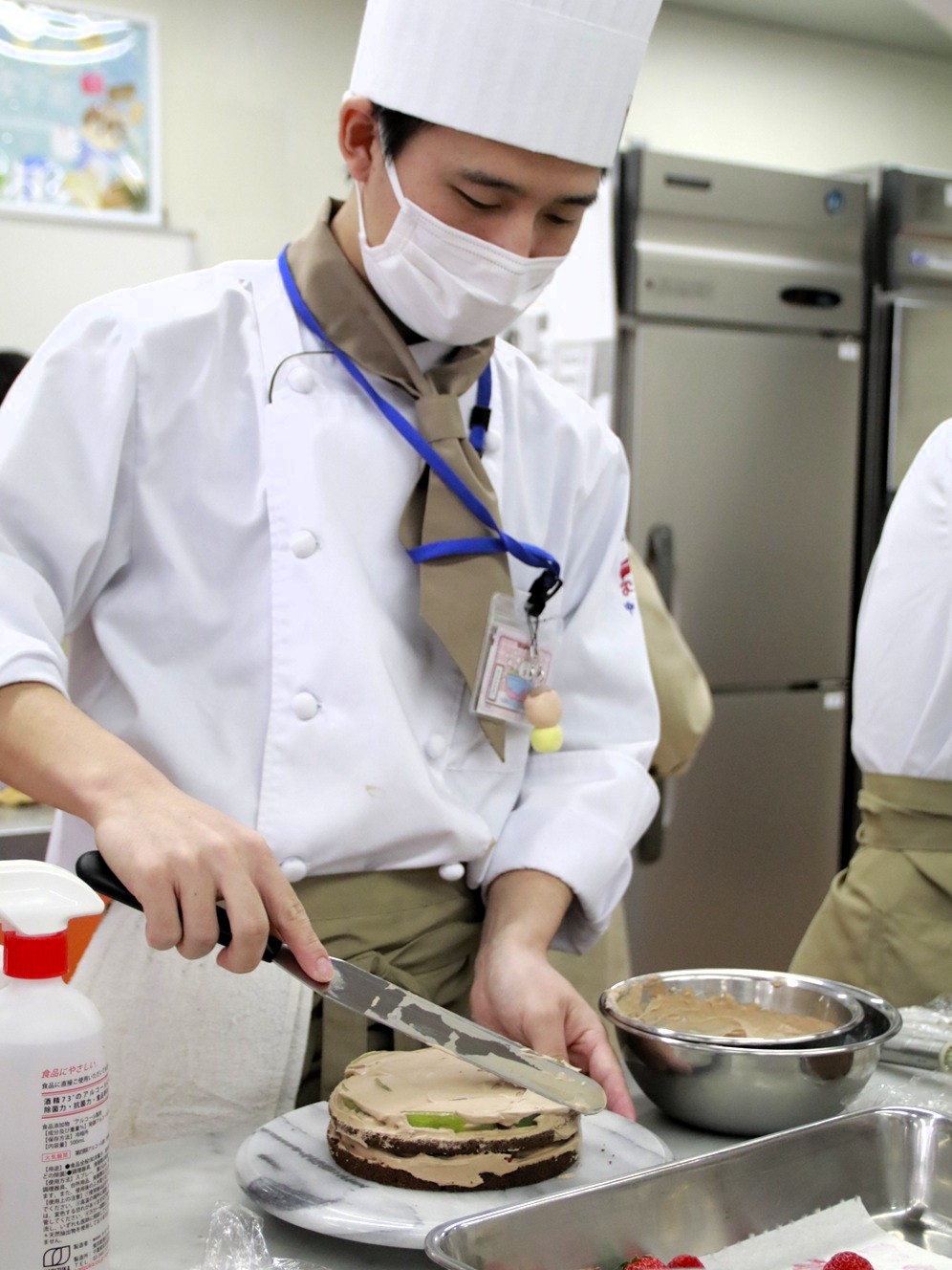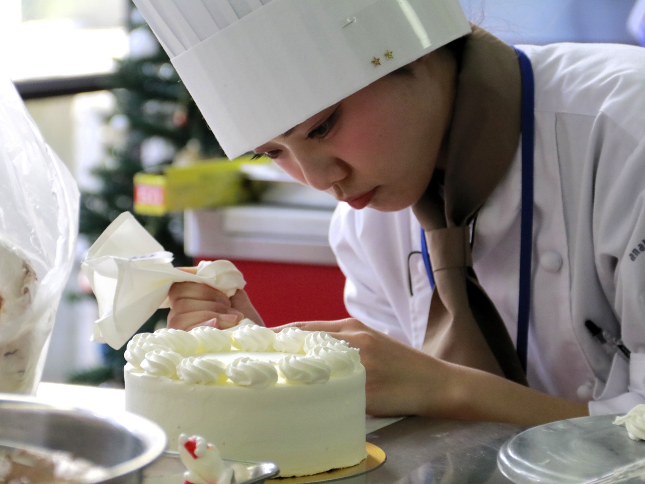 今回は、穴吹調理製菓専門学校のパティシエ・ベーカリー学科1年生による、オリジナルクリスマスケーキ作りの実習風景をレポートします。