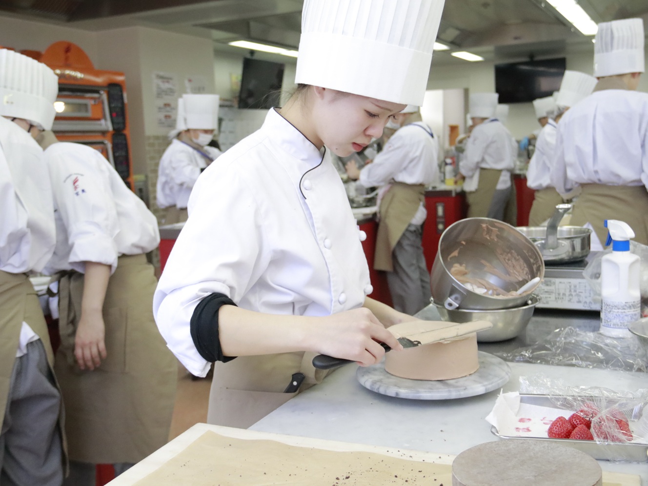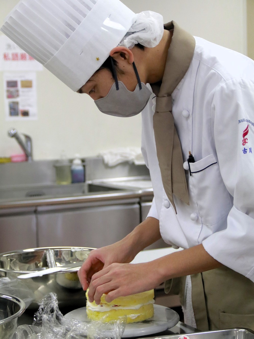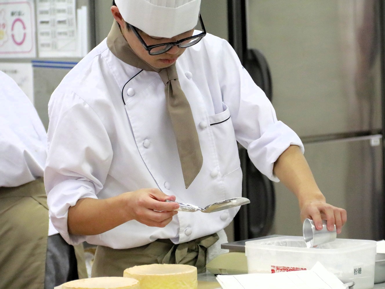 普段は明るく賑やかな1年生ですが、実習が始まれば表情は一変。そこには、将来パティシエとして活躍する自分を見据えた、真剣そのものの眼差しがありました。