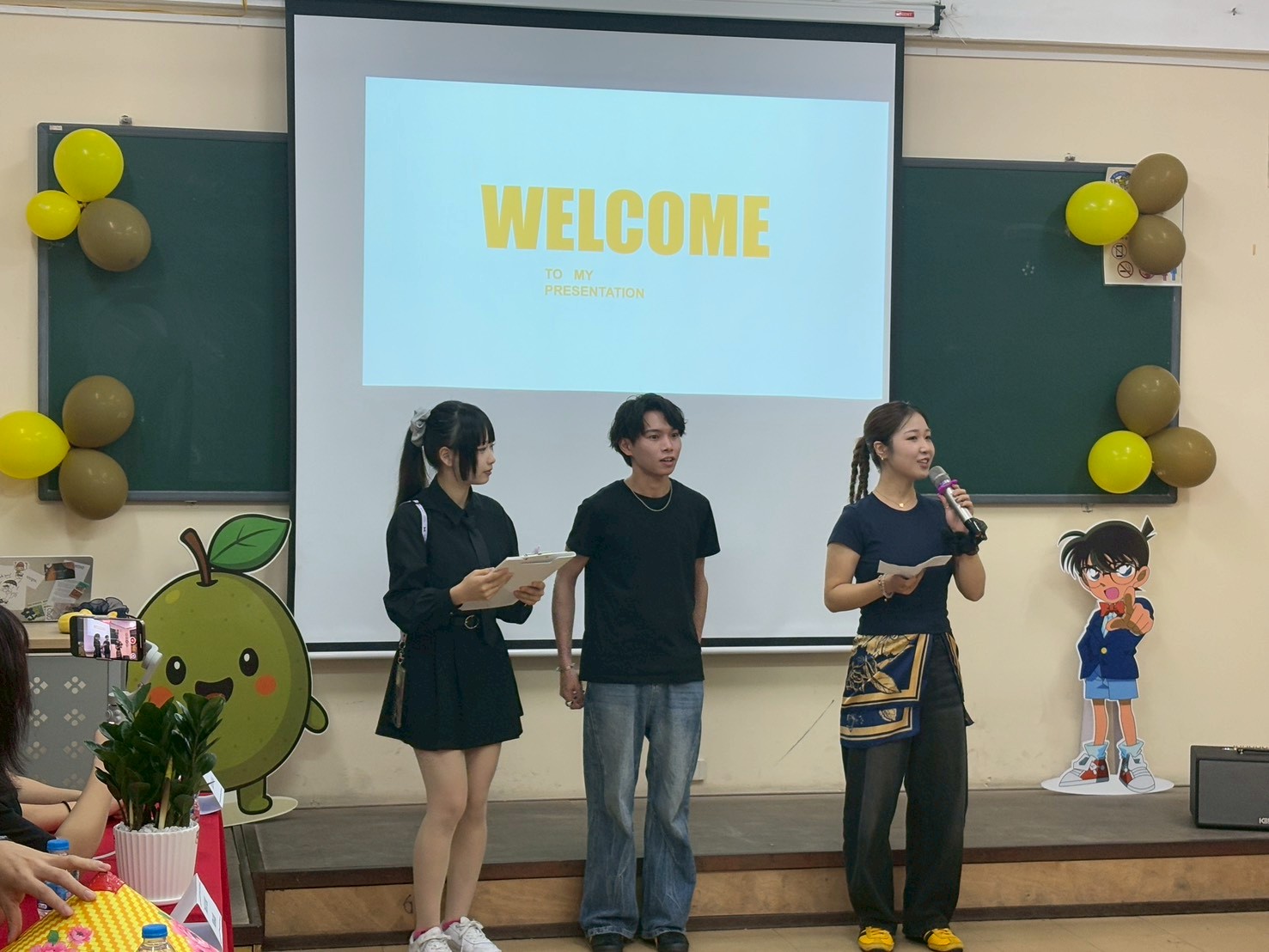 学生たちは、ベトナムの姉妹校で国同士の文化をクイズで紹介したり、お菓子を食べてもらいながら知ってもらったり様々な工夫をしてプレゼンテーションを行いました。