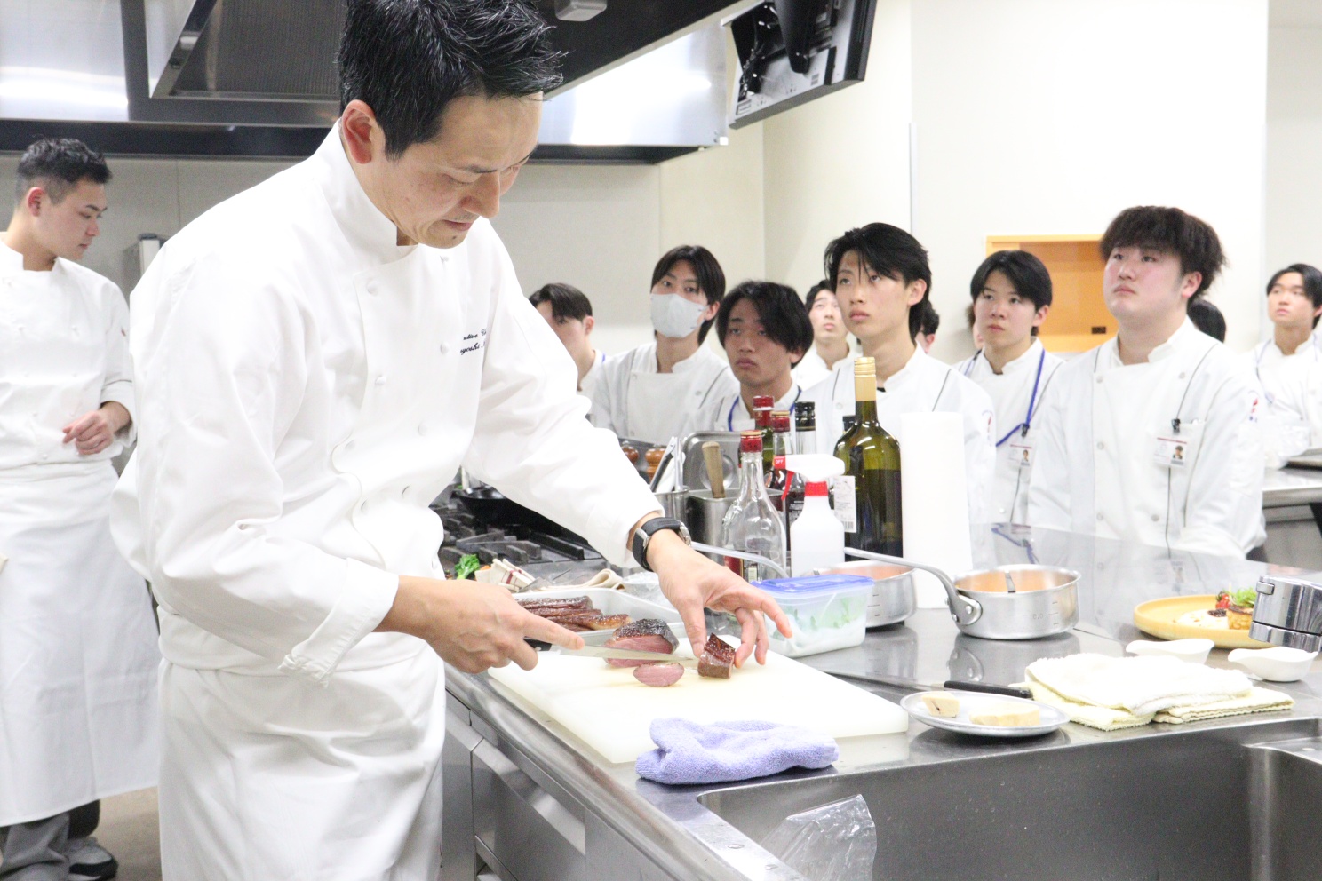調理師を目指す学生たちにとって、この日は特別な一日となりました。京都の東山に位置するラグジュアリーホテル「パーク ハイアット 京都」より、総料理長の井料剛氏をお招きし、特別調理実習が開催されたのです。