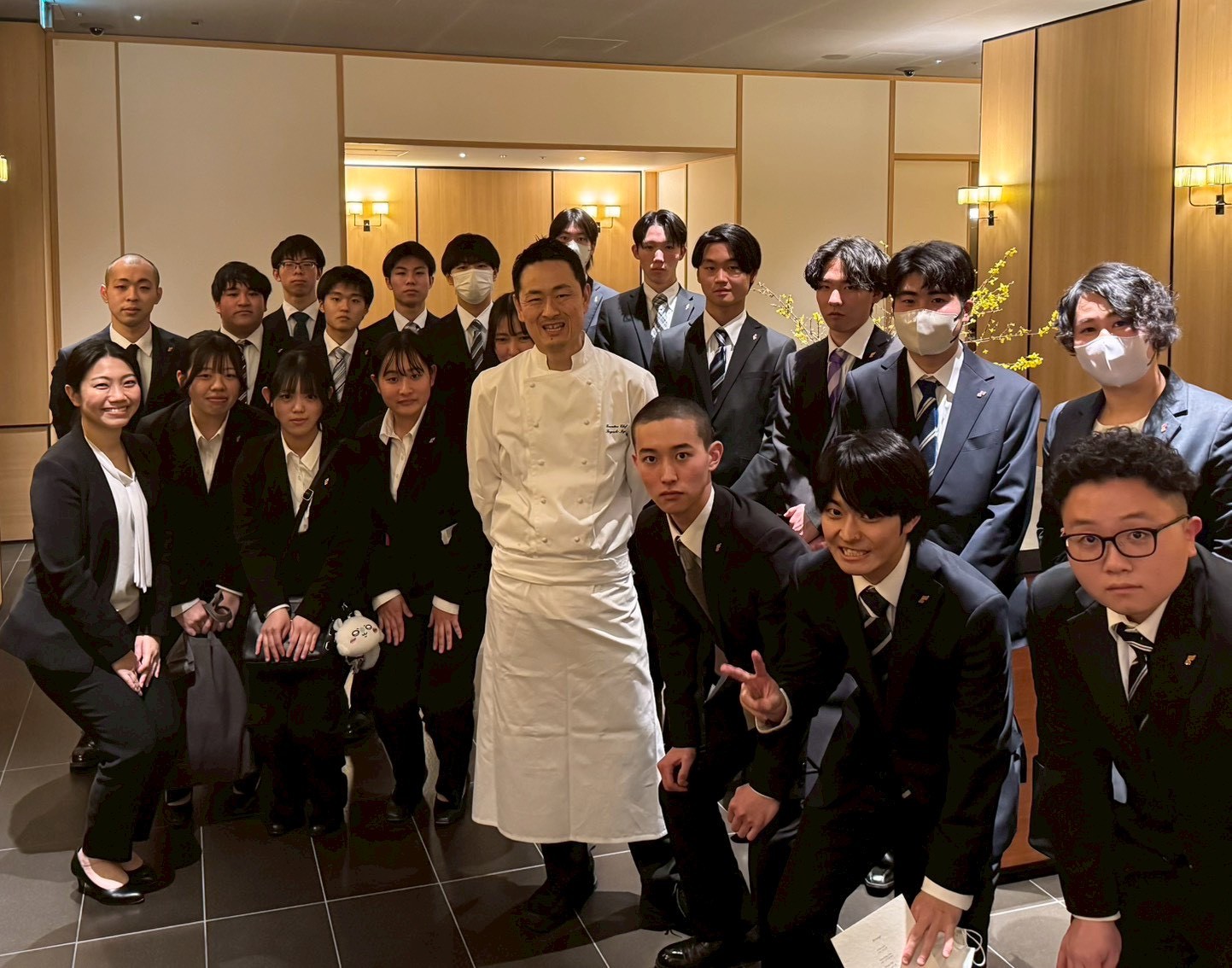 続いて訪れたのは、世界的なラグジュアリーホテル「パーク ハイアット 京都」。 こちらも先日、特別授業でお越しいただいた井料総料理長が学生たちを温かく迎えてくださいました!