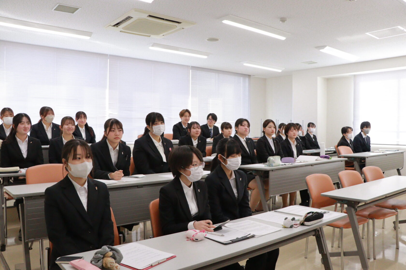 学生たちは、普段のコック服とは異なるスーツ姿で参加し、就職活動を見据えた実践的な学びに臨みました。